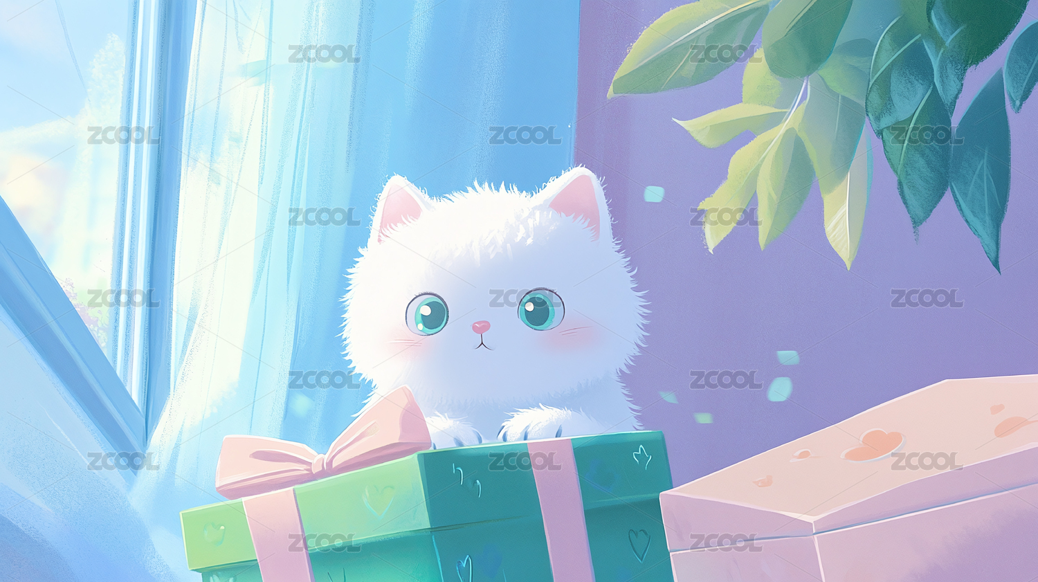 北极熊可爱唯美野生动物3D卡通插画壁纸