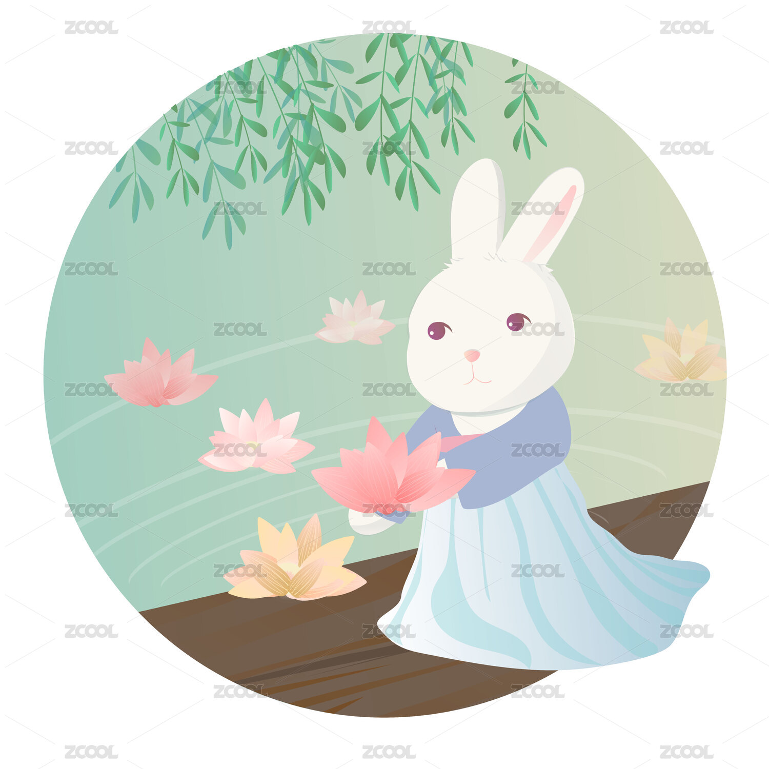 中秋节穿汉服的兔子