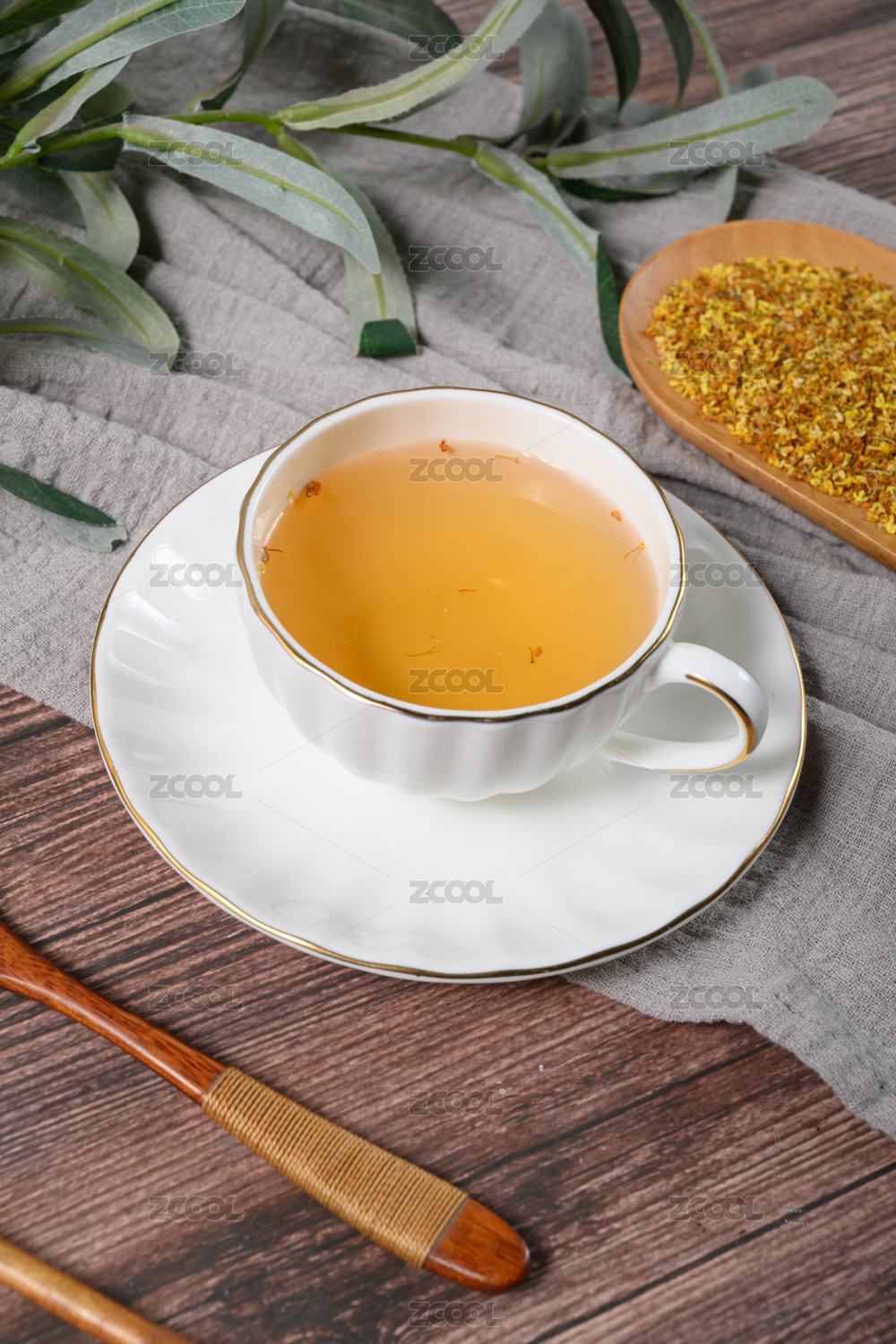 桌面上的杯子里的甘甜可口的赶黄草茶
