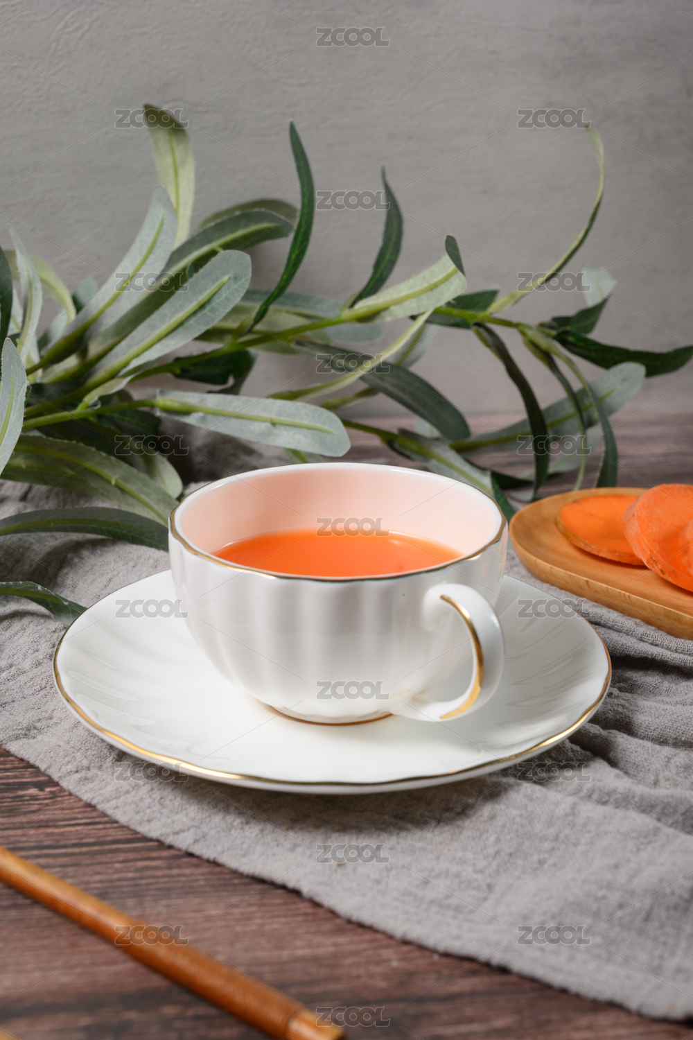 桌面上的杯子里的甘甜可口的罗汉果茶
