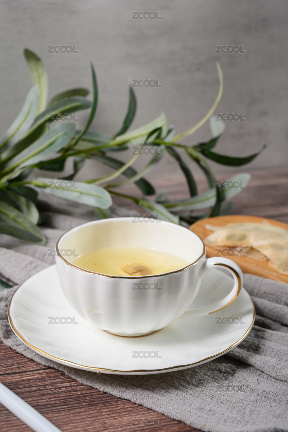 桌面上的杯子里的甘甜可口的天麻茶