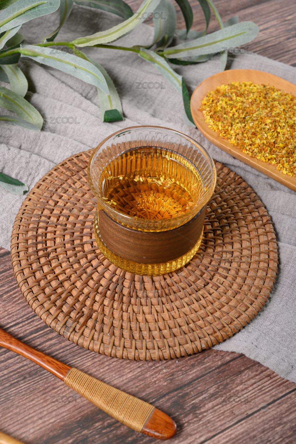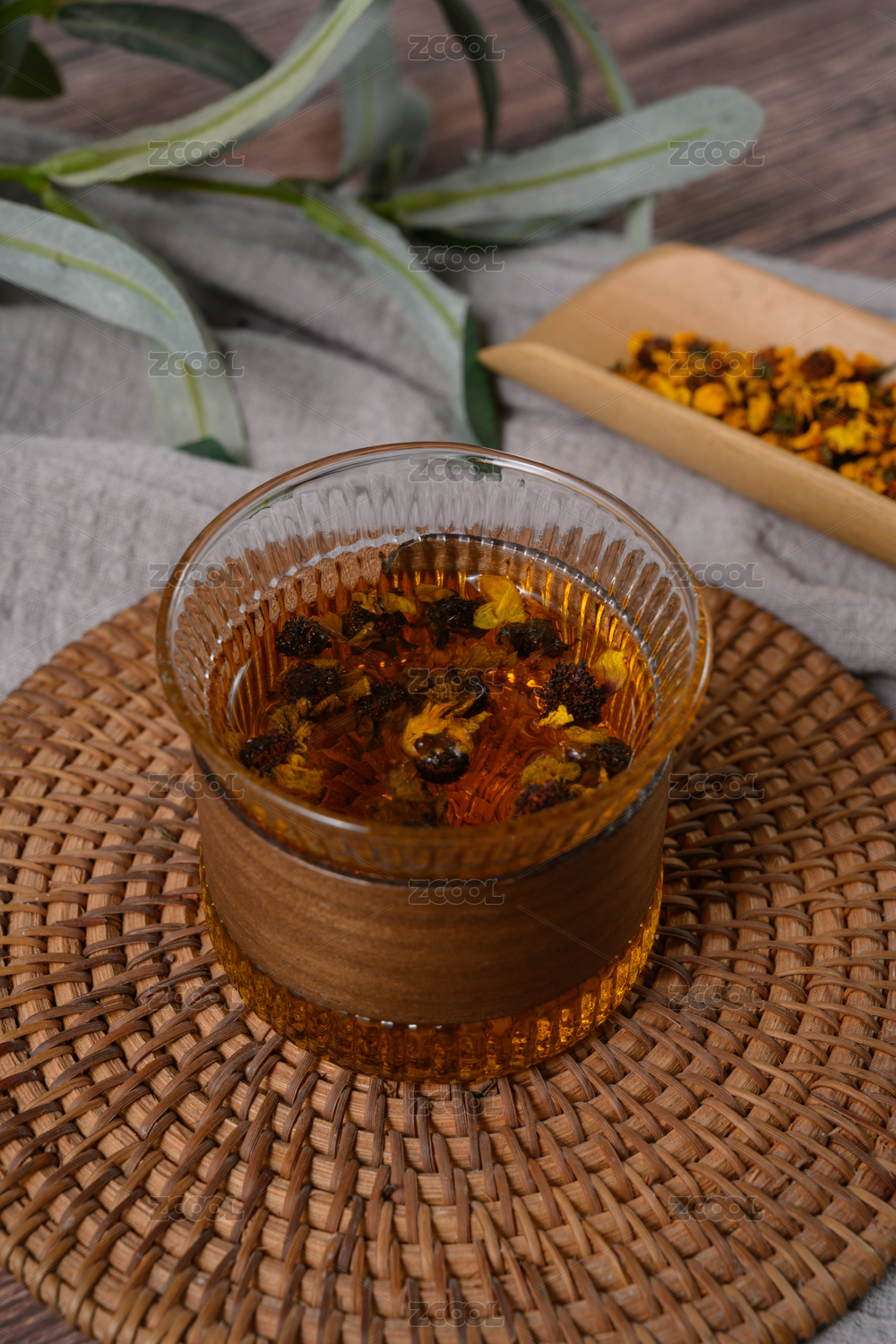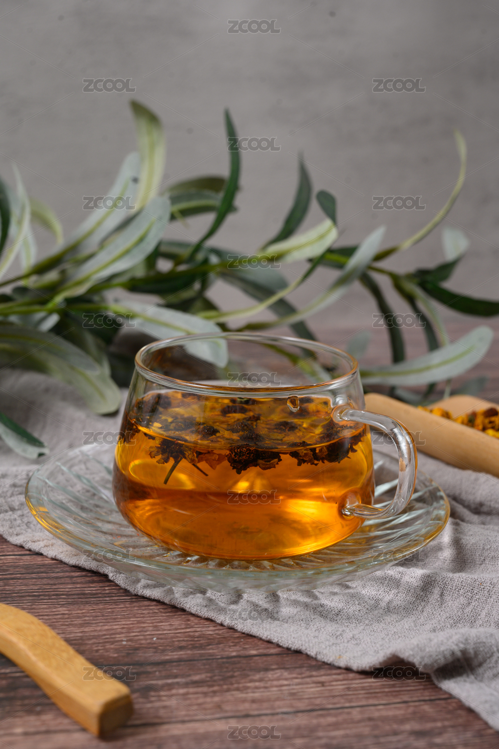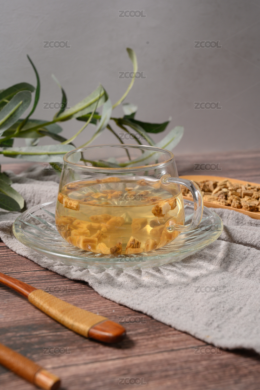 桌面上的杯子里的甘甜可口的茉莉吐珠茶