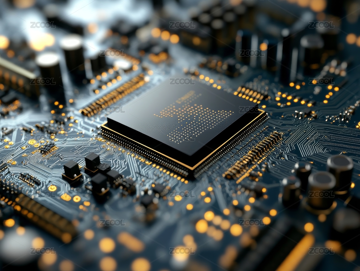 金色芯片与电子元件