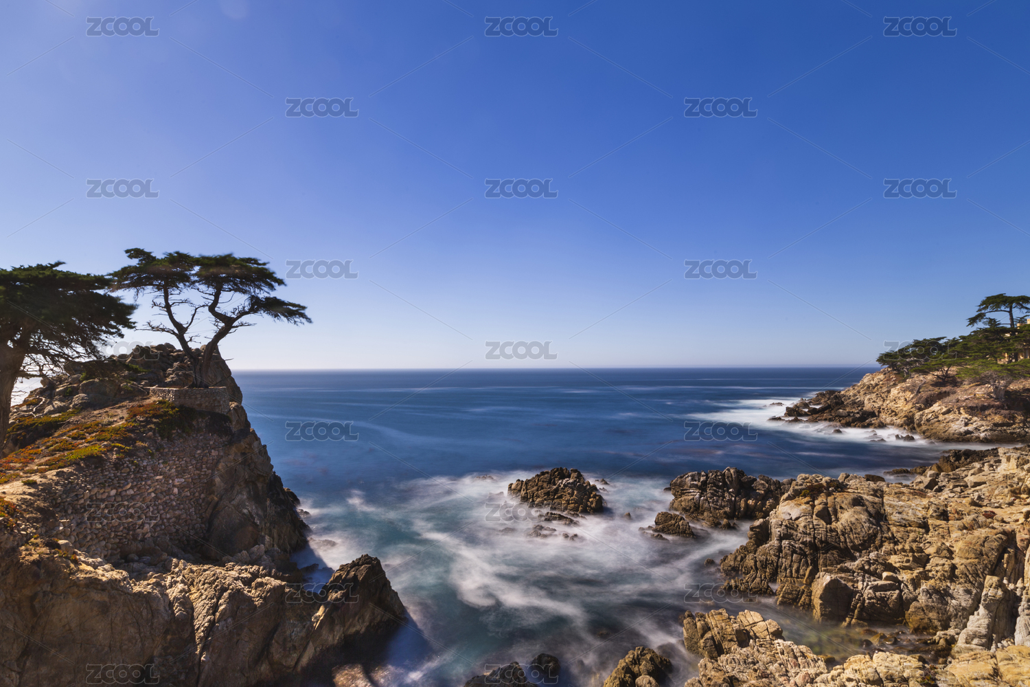 17英里,松树,悬崖,海滩,海岸,岩石,大海,蓝天,白云,海浪