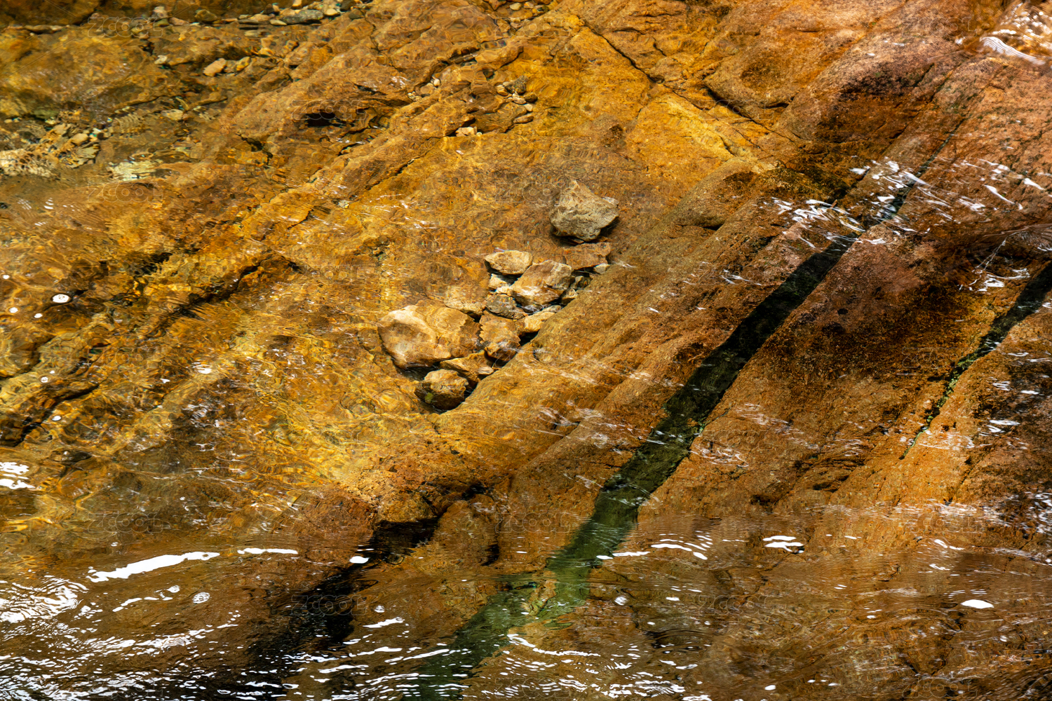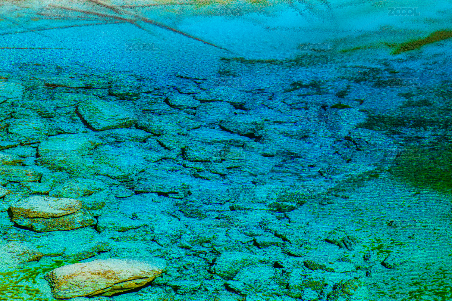 四川省阿坝州九寨沟-湖边岩石的高角度视图
