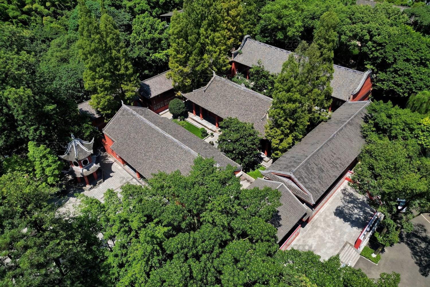 四川省成都市崇州市崇州文庙罨画池航拍