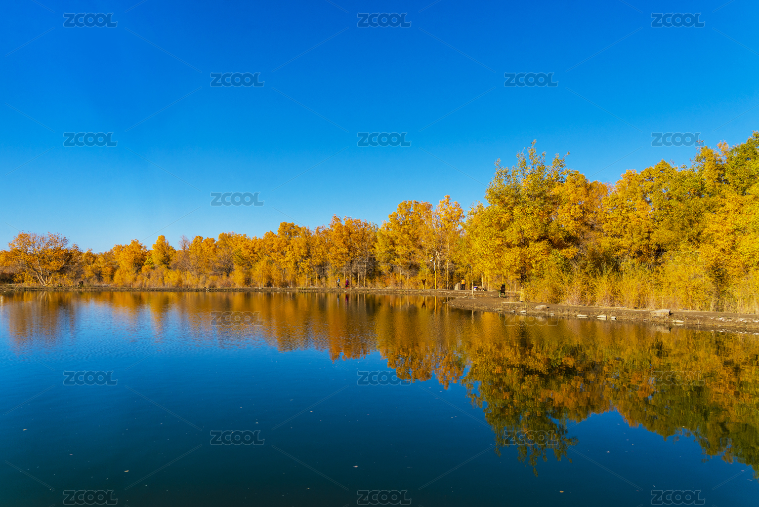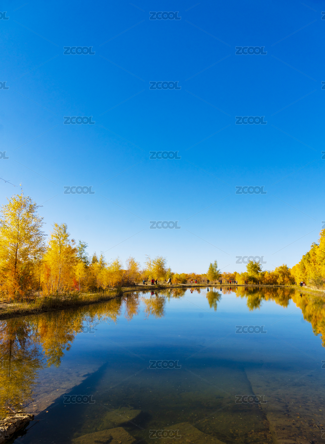 中国酒泉金塔秋天金黄色胡杨林水面光影