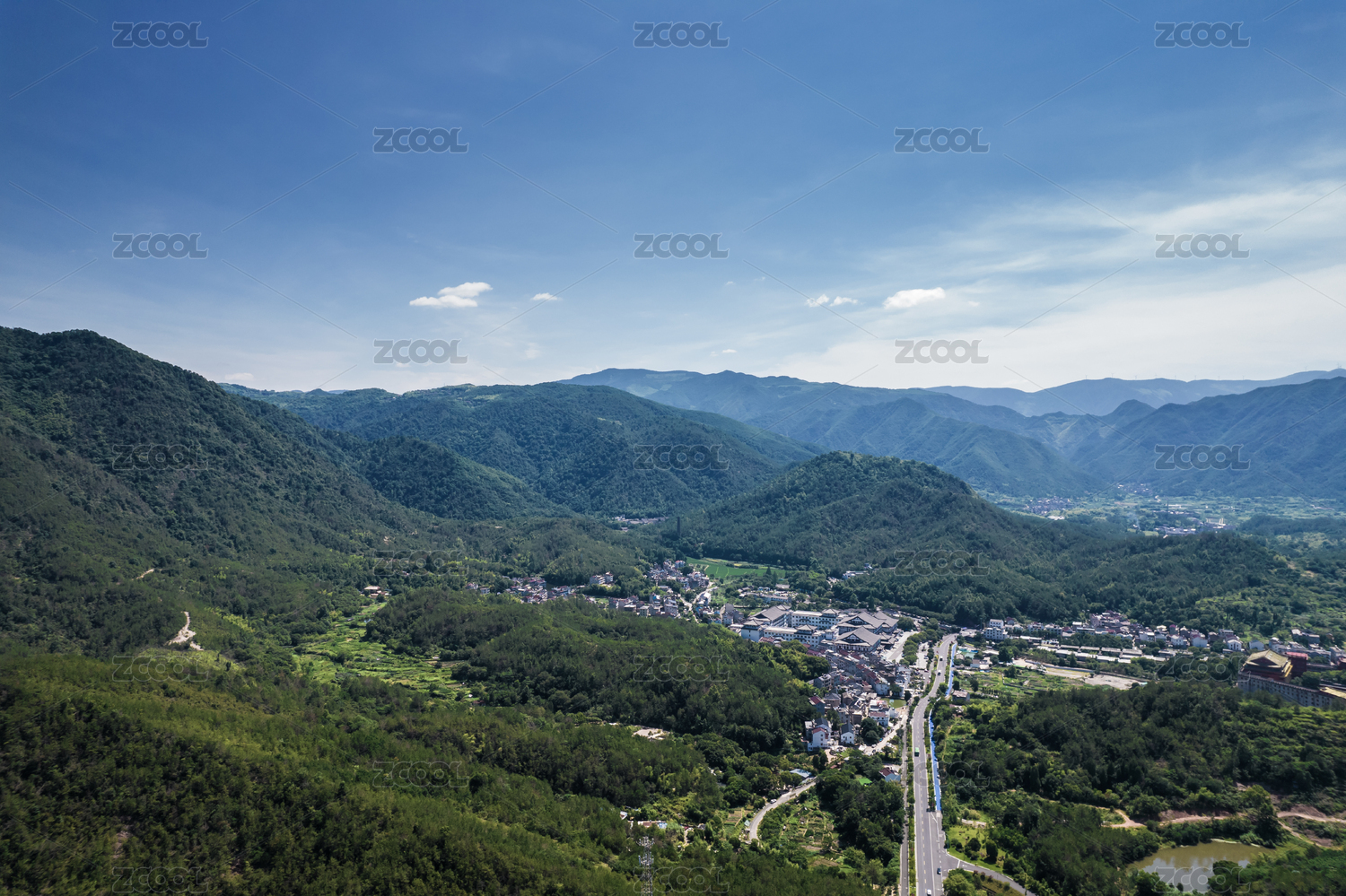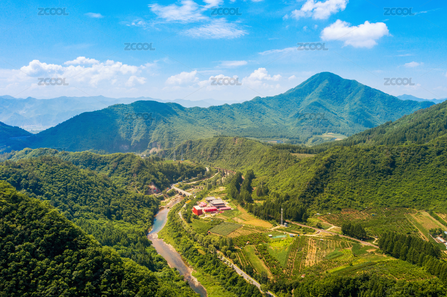 航拍春天北京郊区怀柔群山环抱中的村庄