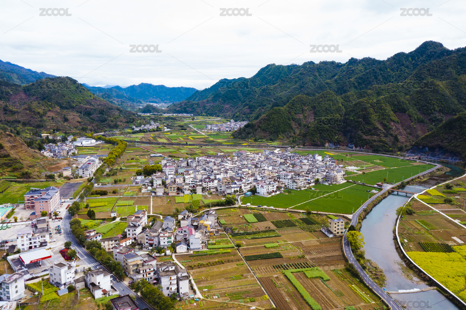航拍,山村,溪流,村镇,田园风光,农村,农业,稻田