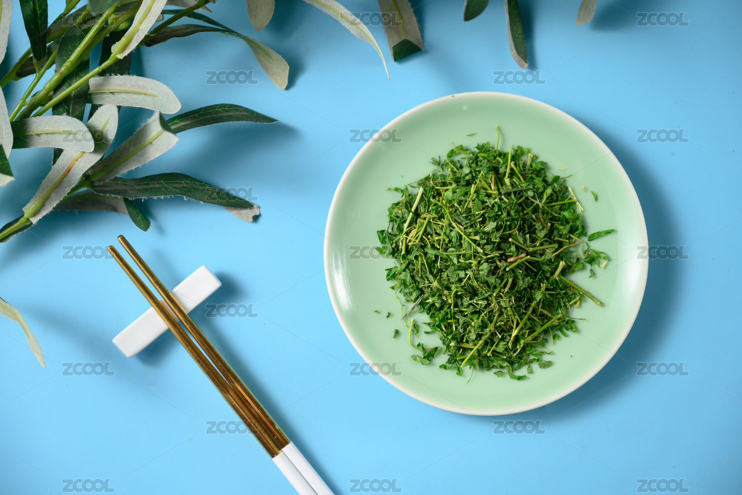 桌面上的盘子里的美味可口的香菜干