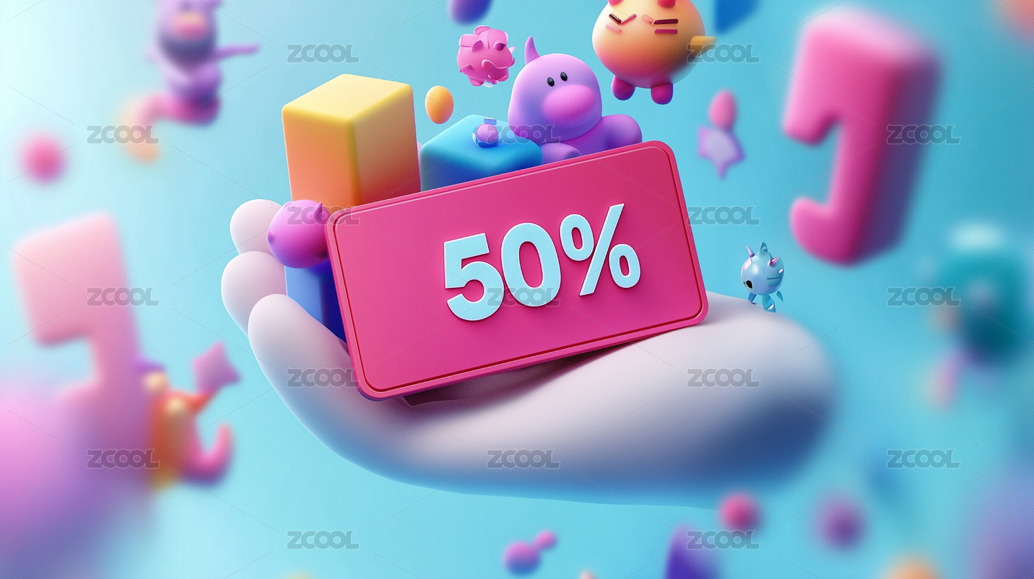 图标,3D,百分比,背景,白色,云朵,简单,插画,阴影,可爱