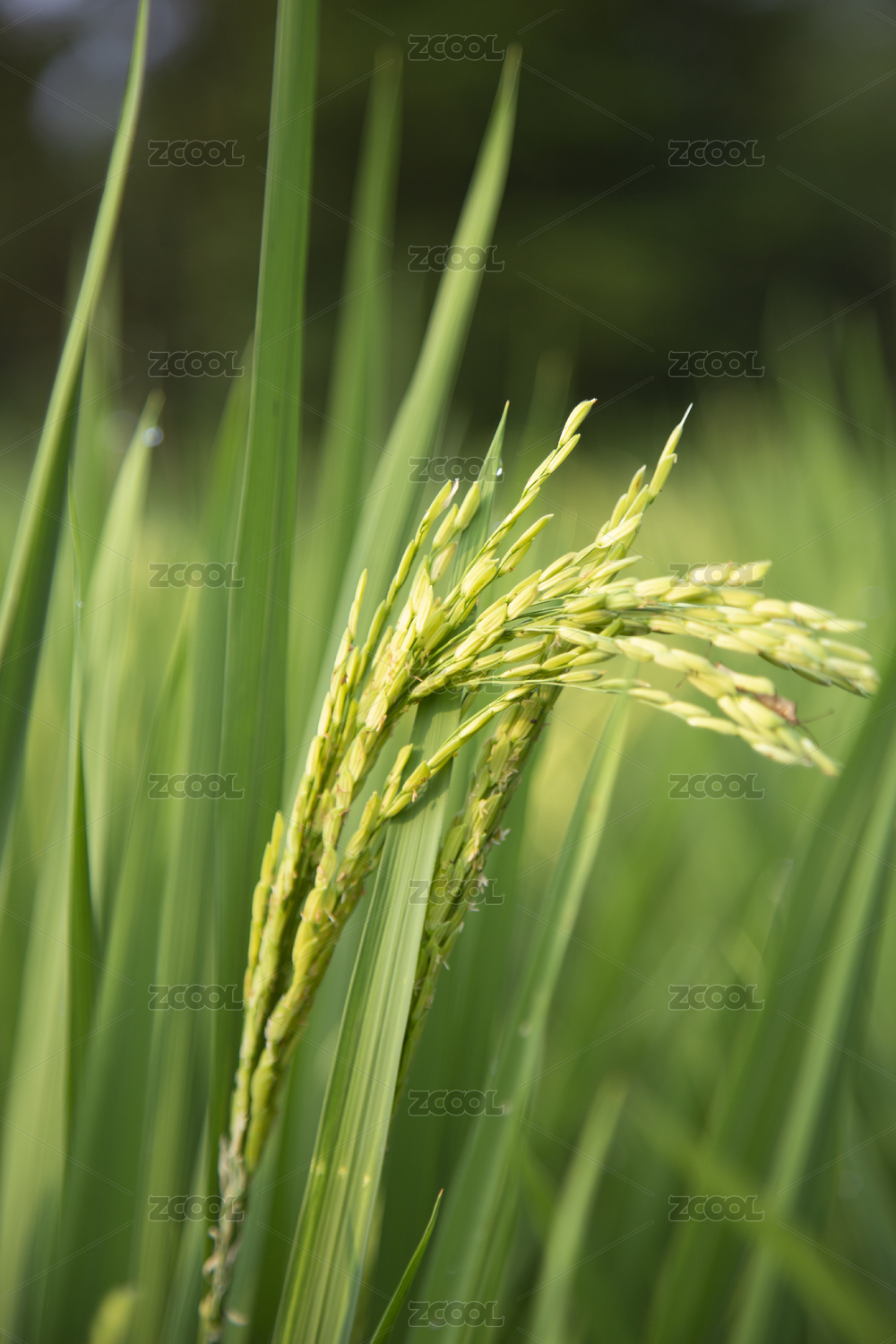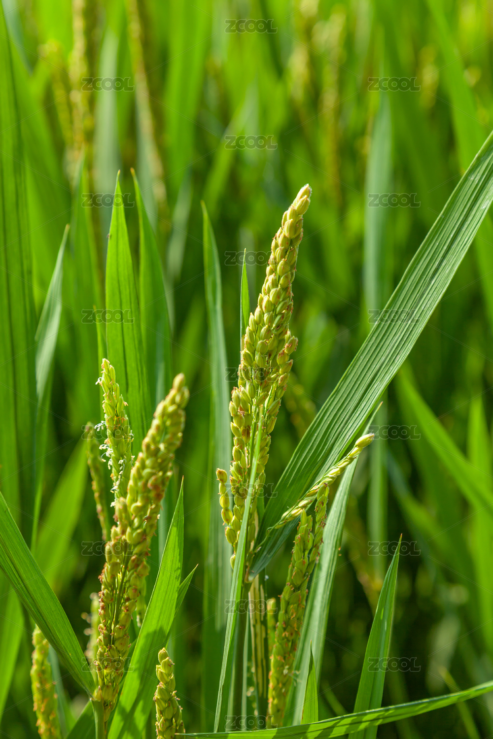 阳光照耀下的稻田刚抽穗的稻谷稻花