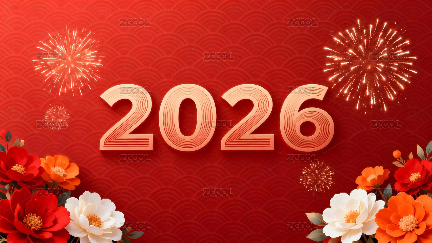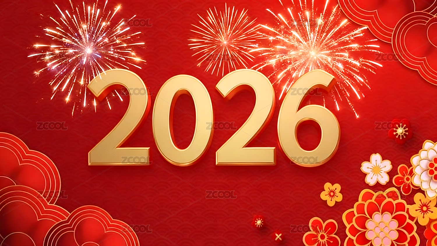 2026新年烟花红色背景