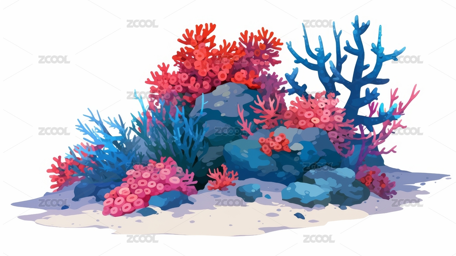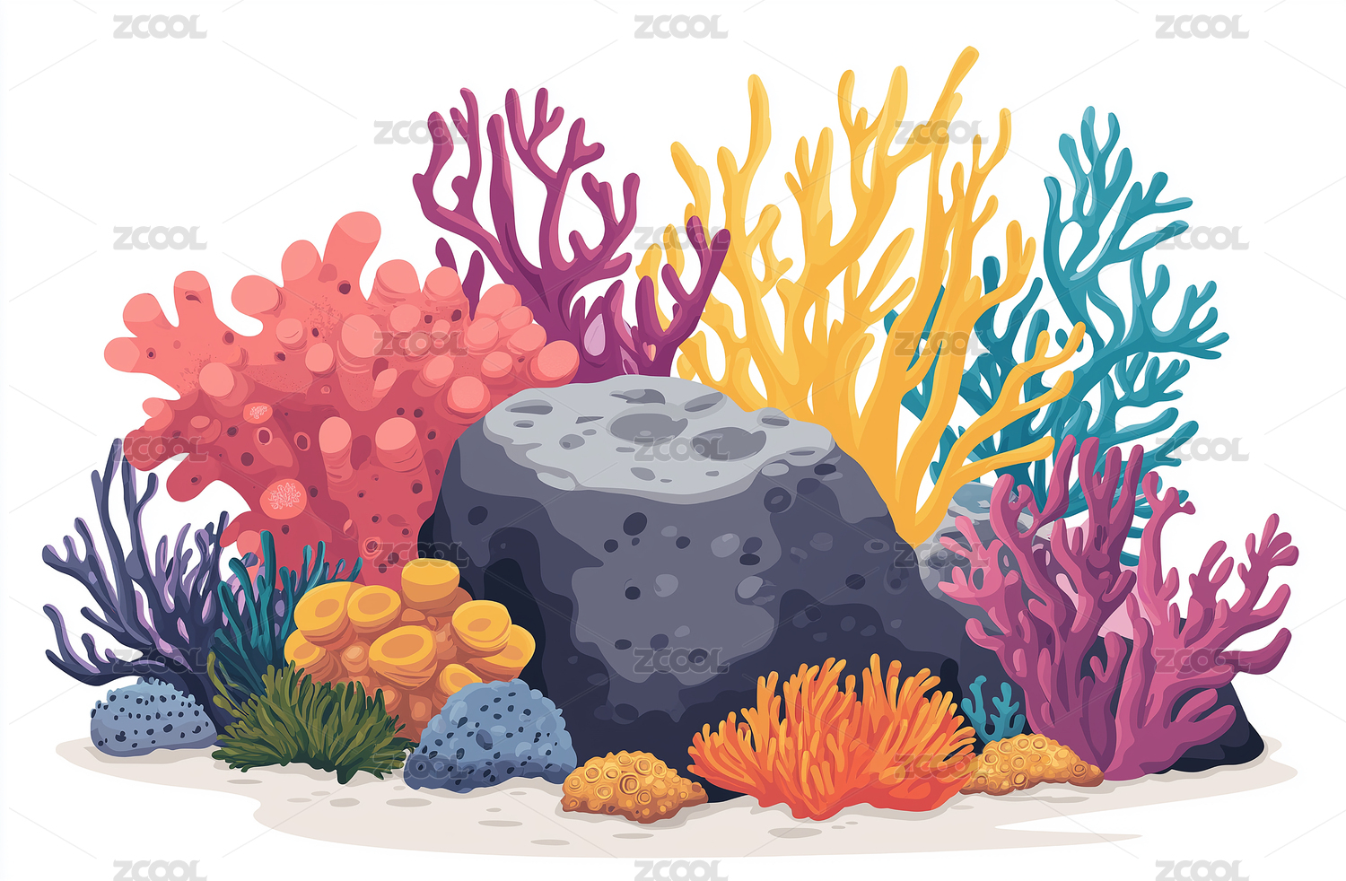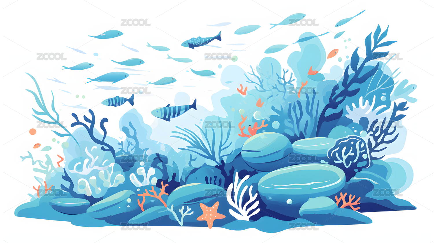 海洋,海底,海草,礁石,插画,插图,手绘,珊瑚