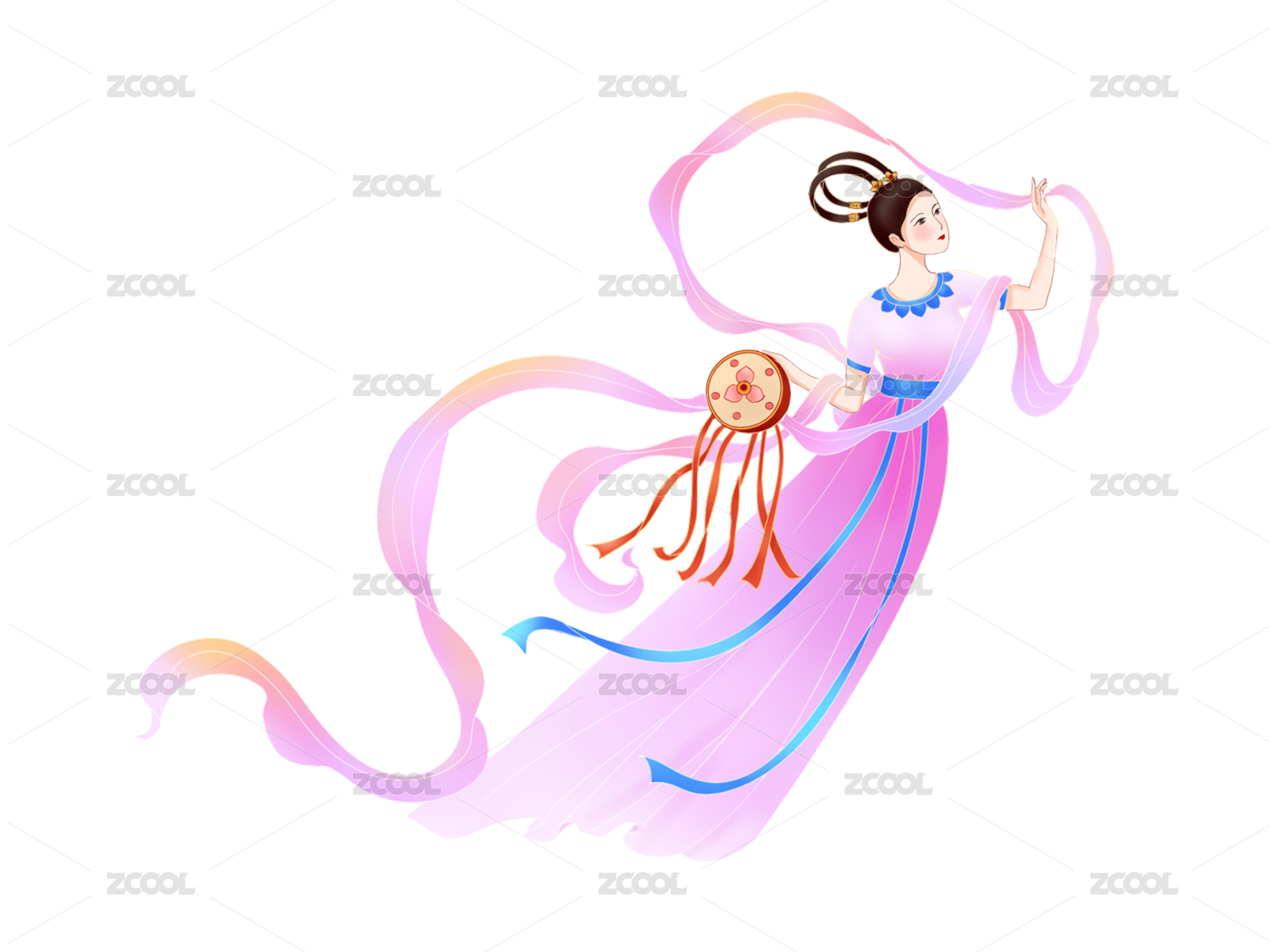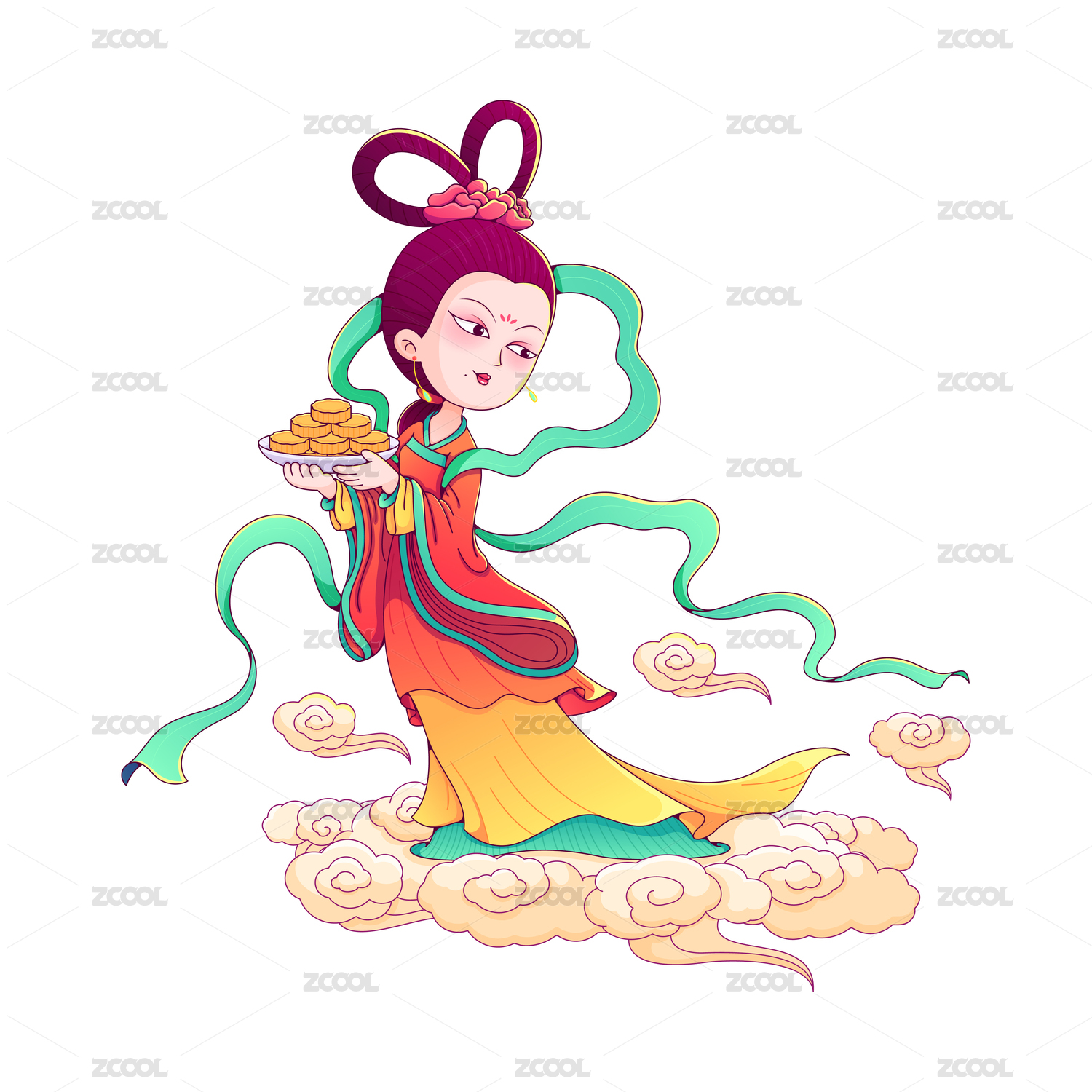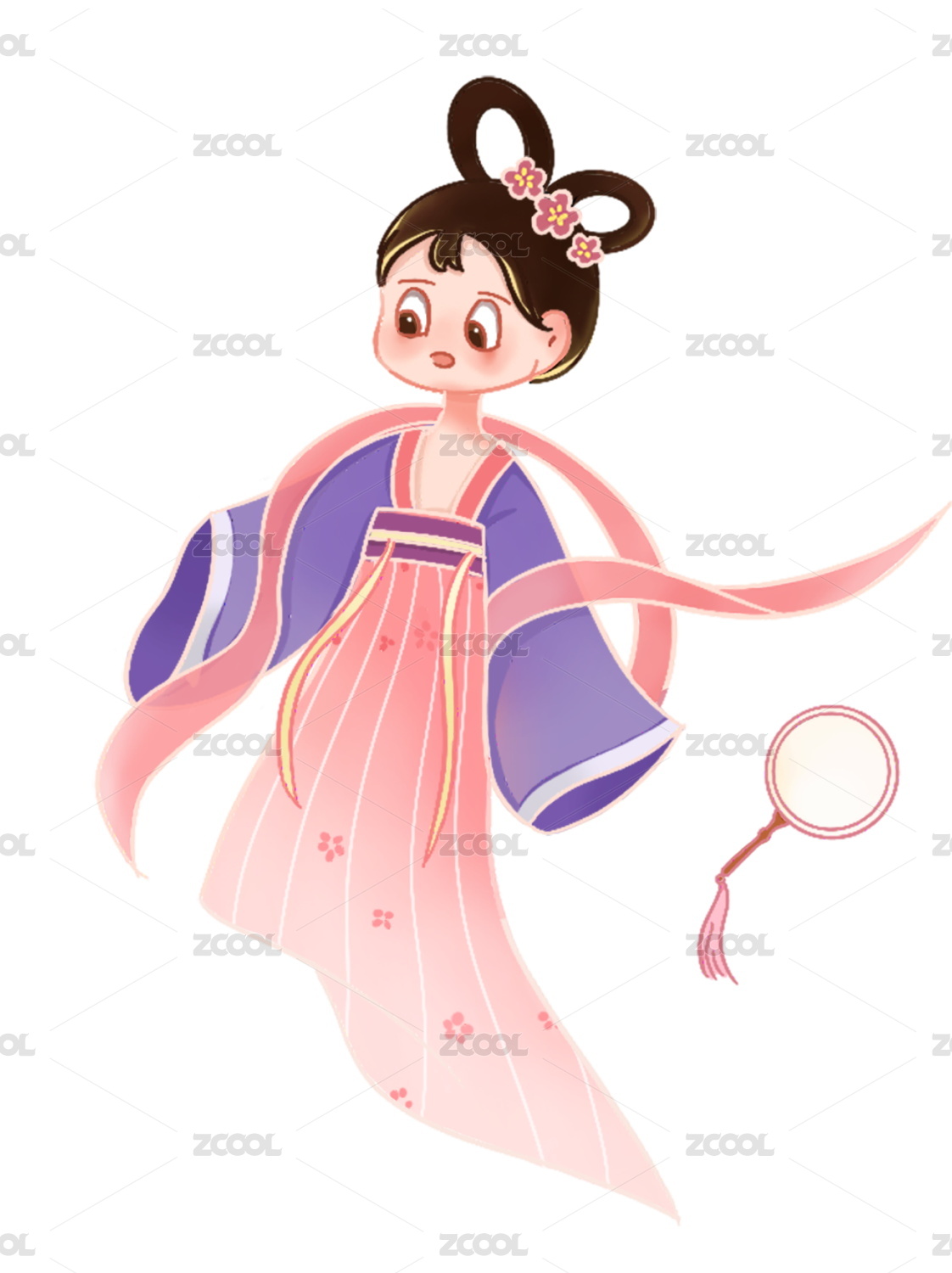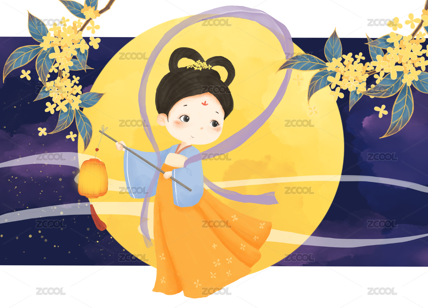 卡通,手绘,中秋节,节日,八月节,月宫,仙子,嫦娥,人物,插画
