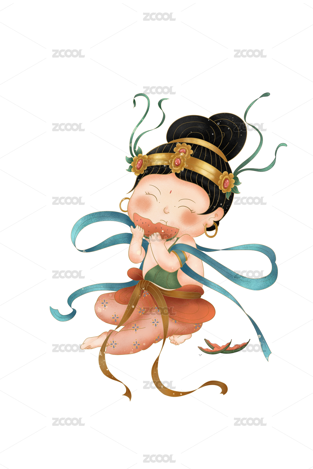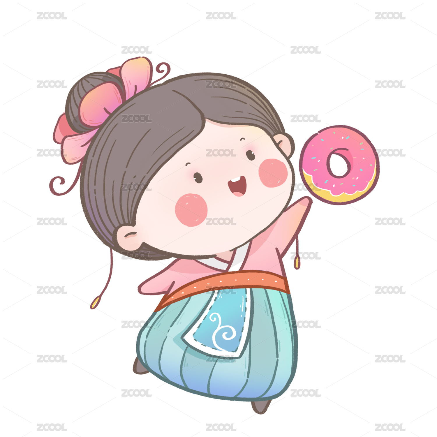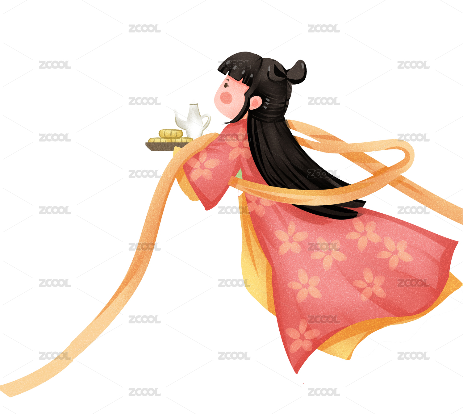 小清新风格中秋节嫦娥手捧月饼插画人物元素
