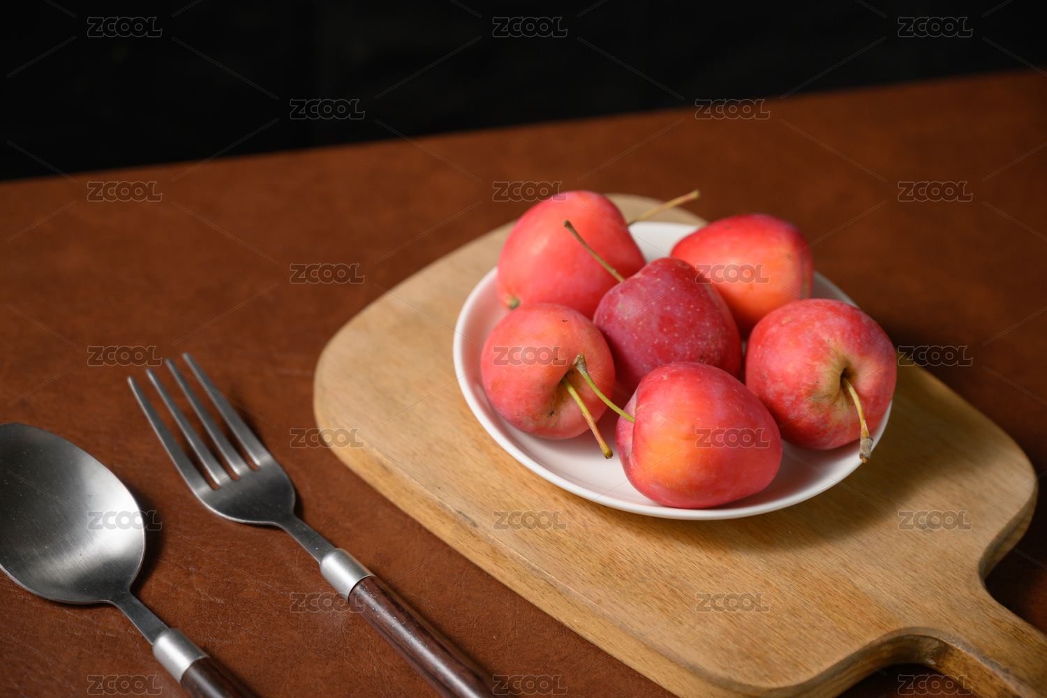 桌面上的盘子里的新鲜海棠果