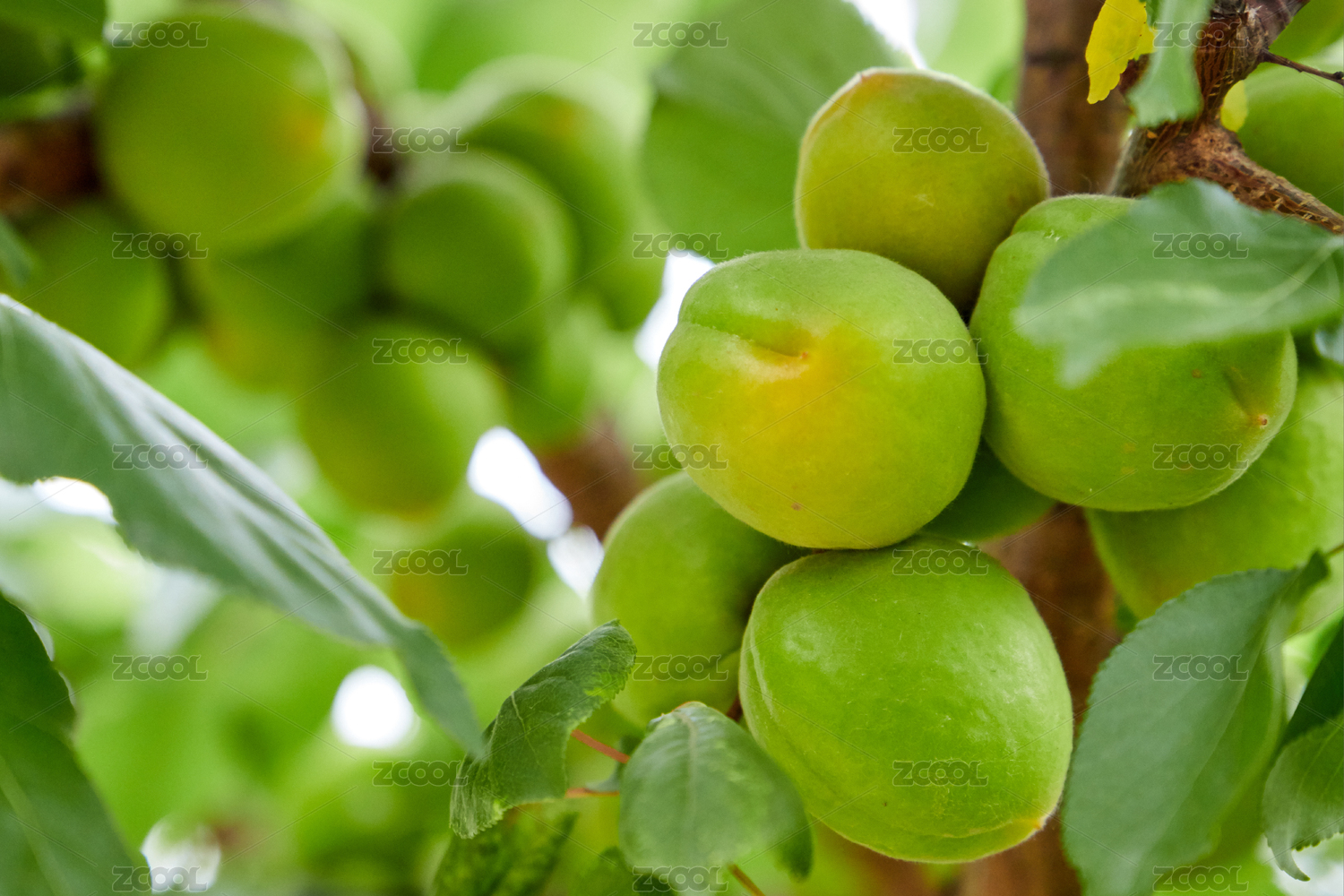 果树,叶,水果,杏,杏子,青杏,生长,夏季,未成熟,青涩