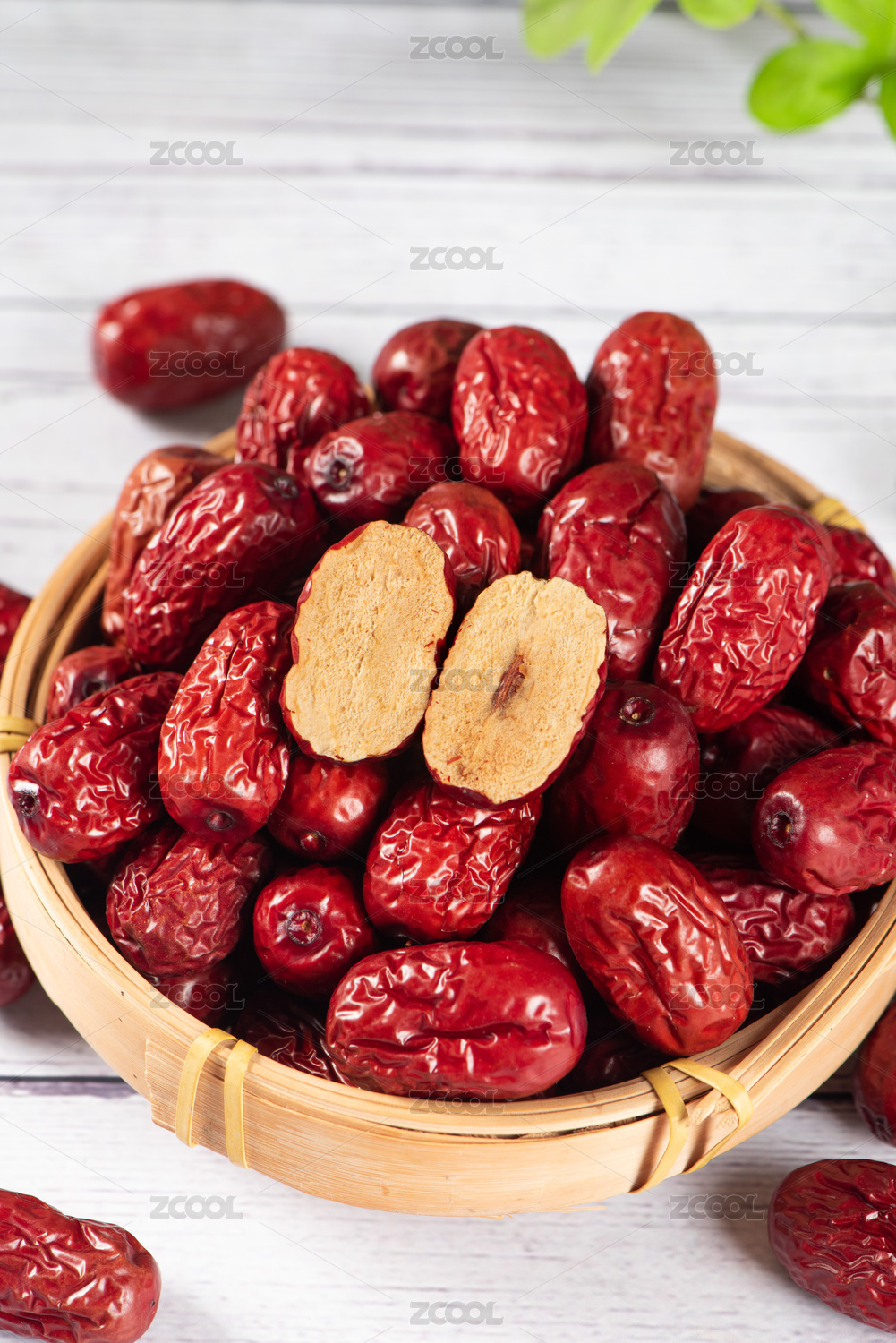 桌子上切开的红枣大枣