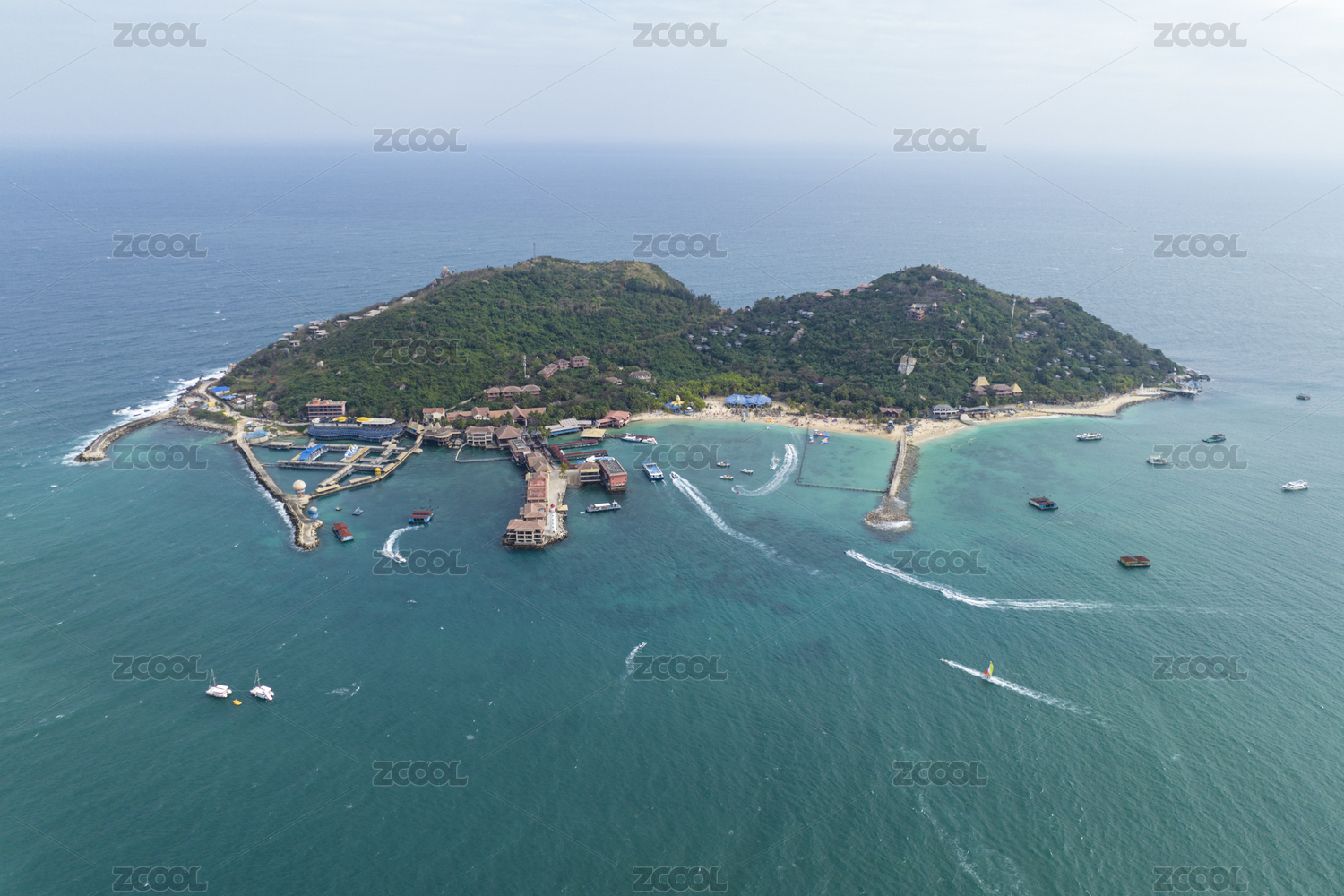 航拍海南三亚西岛海洋文化旅游区热带岛屿