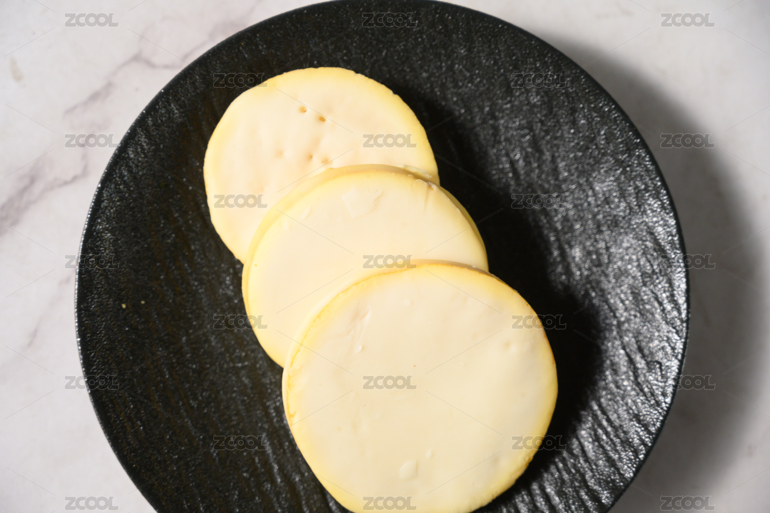 桌面上的盘子里的美味可口的白巧克力橙子片