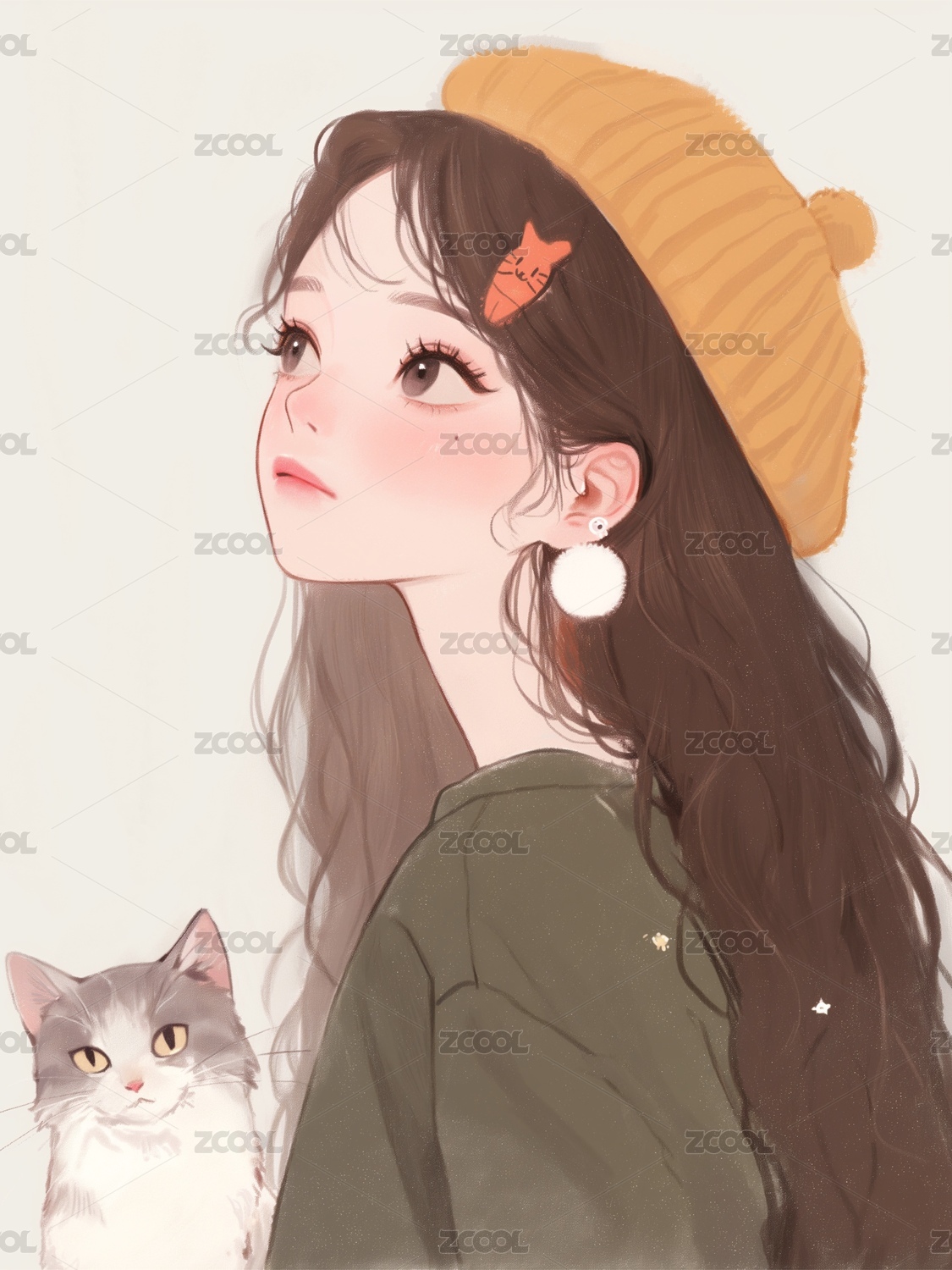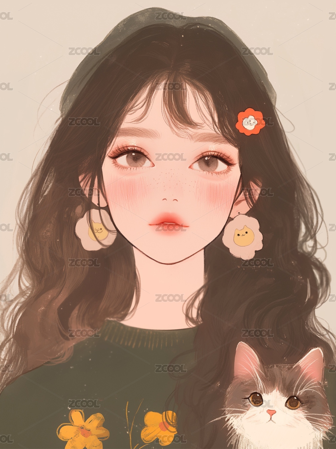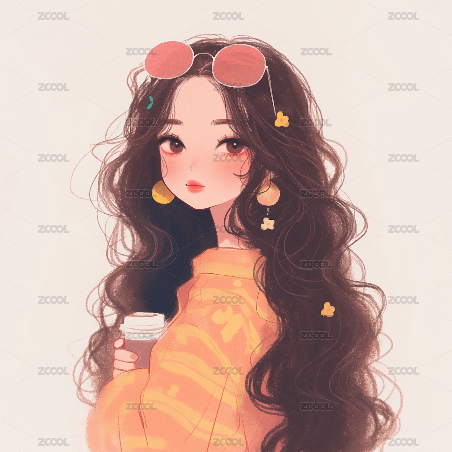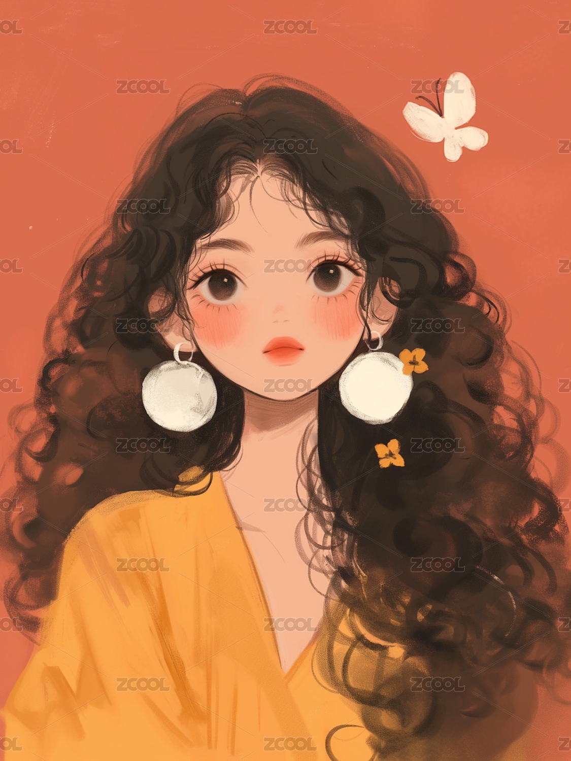 黑色长发和棕色眼睛的动漫女孩高清图片
