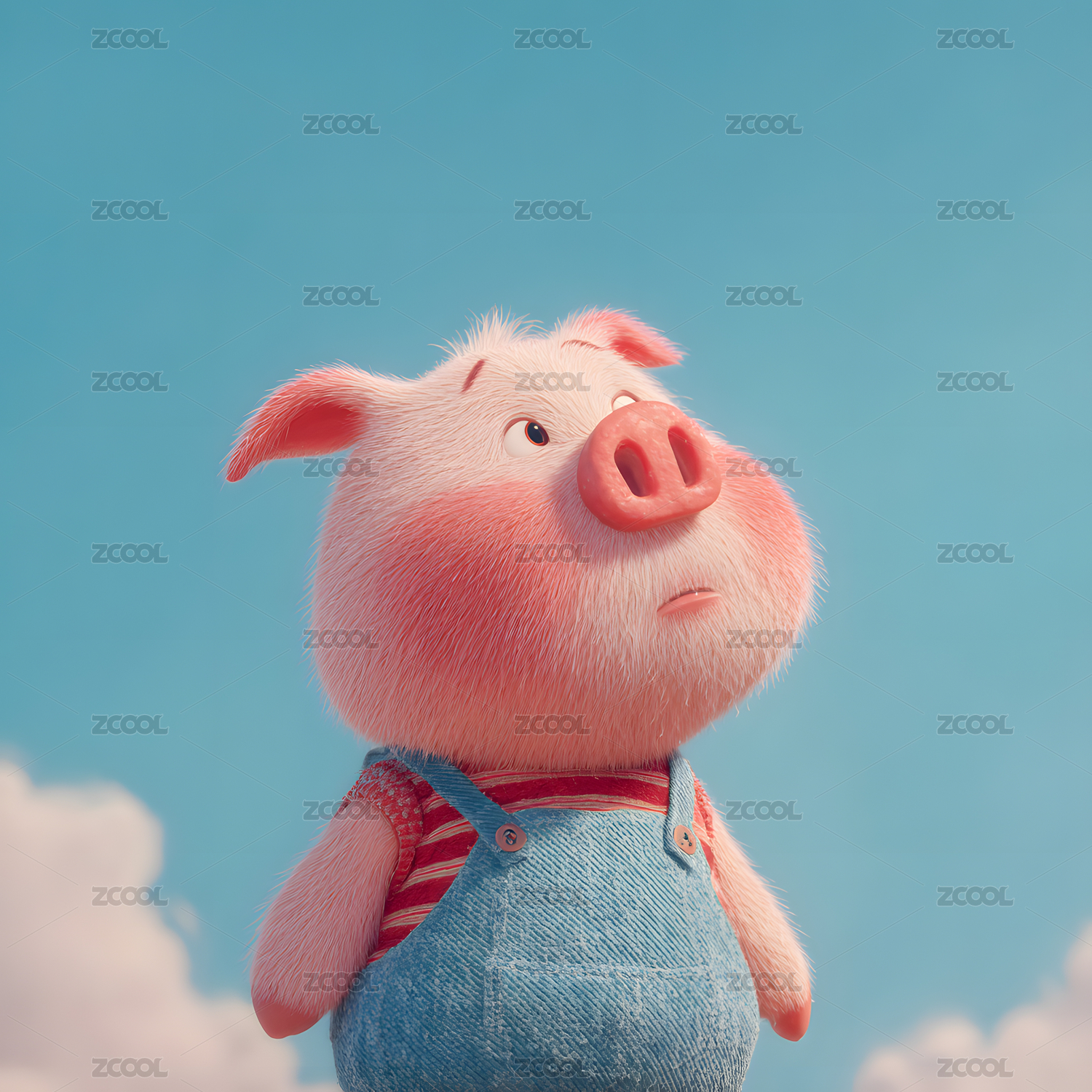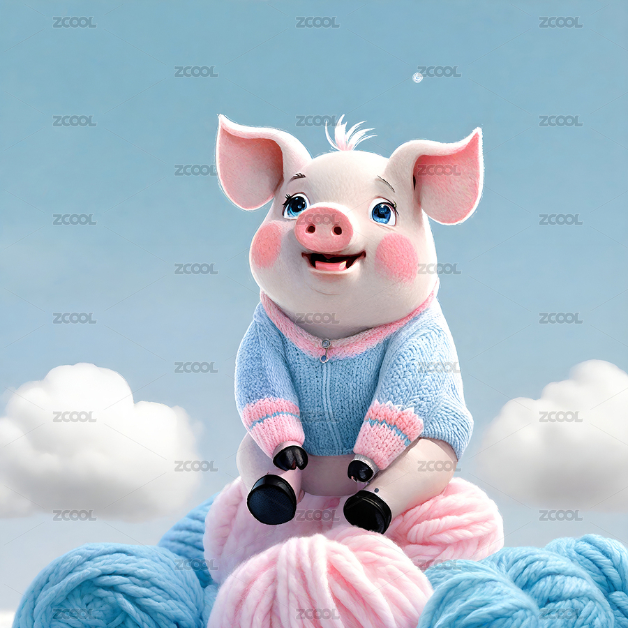 蓝天白云穿着毛绒衣服的可爱小猪