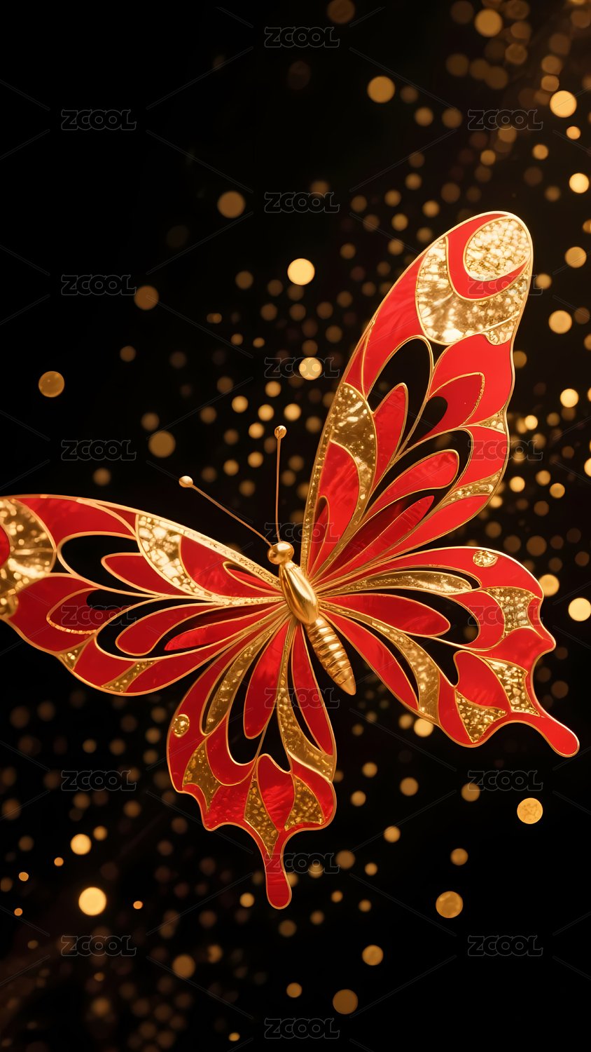 红色背景金色蝴蝶