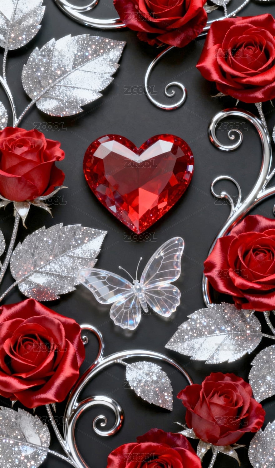 蝴蝶玫瑰华丽装饰场景
