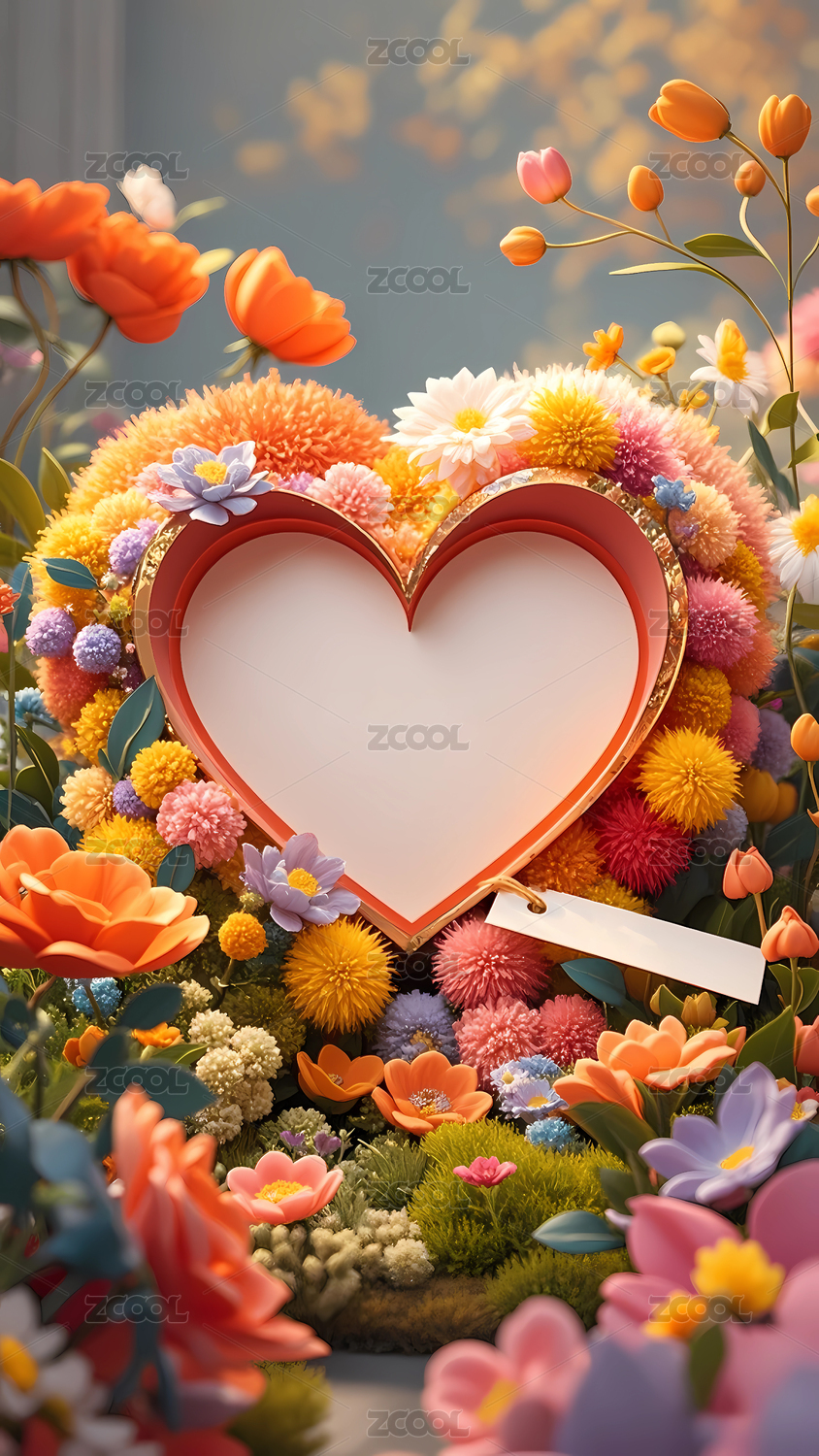 心形空标签鲜花背景墙易拉宝海报的插画艺术