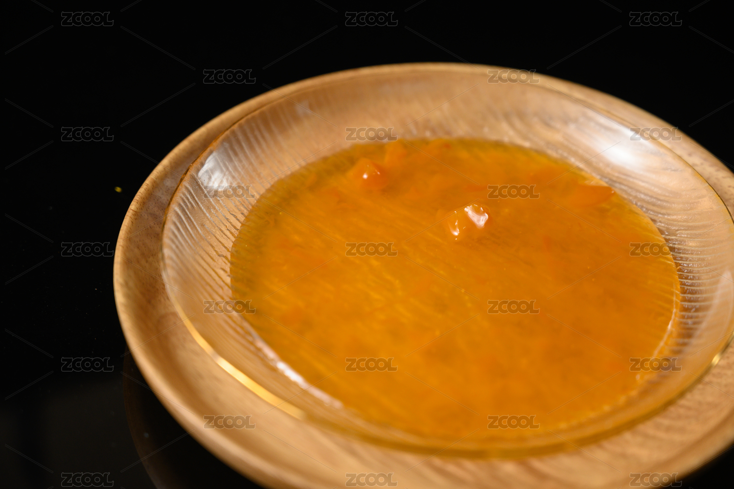 桌面上的盘子里的美味可口的芒果果酱
