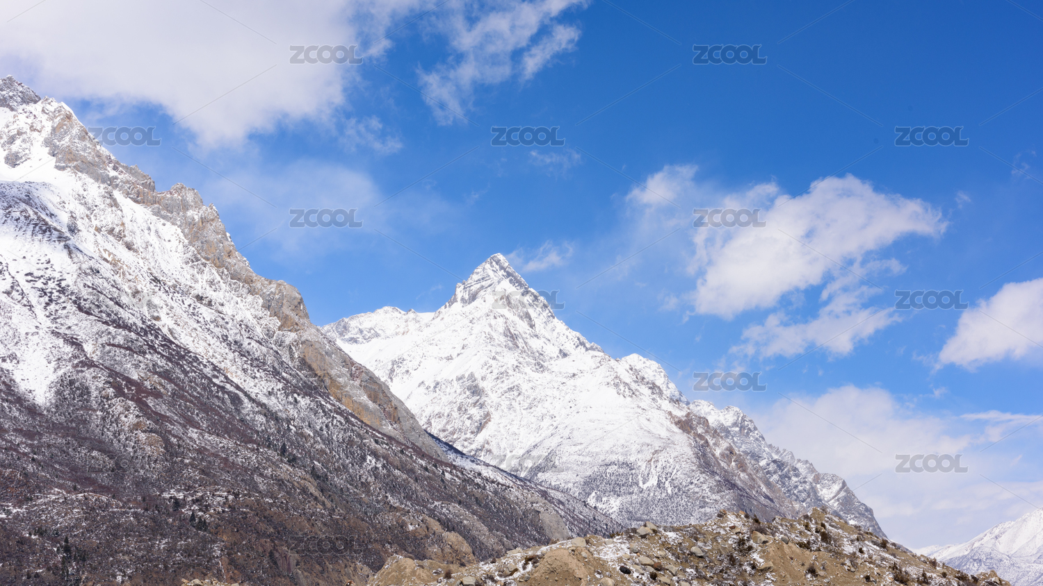 四姑娘山双桥沟景区雪山晴空蓝天白云