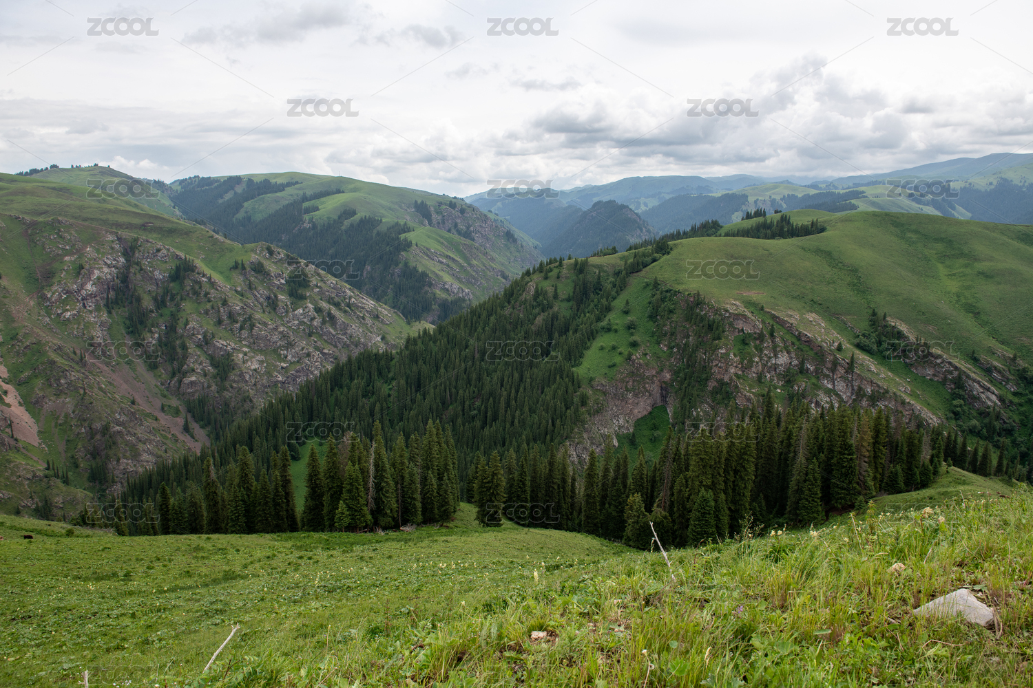 中国新疆伊犁昭苏夏塔古道草原森林自然风光