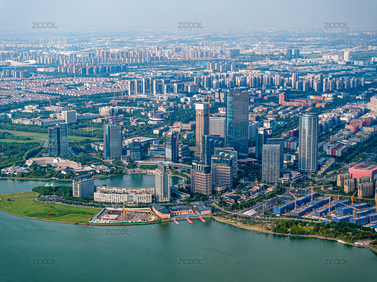 中国江苏苏州金鸡湖CBD城市航拍风光