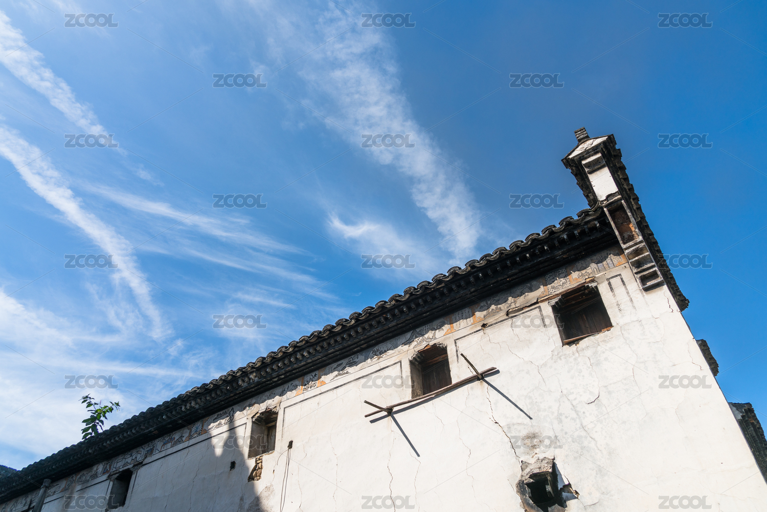 对蓝天的历史建筑,在丽水,中国拍摄的屋顶。