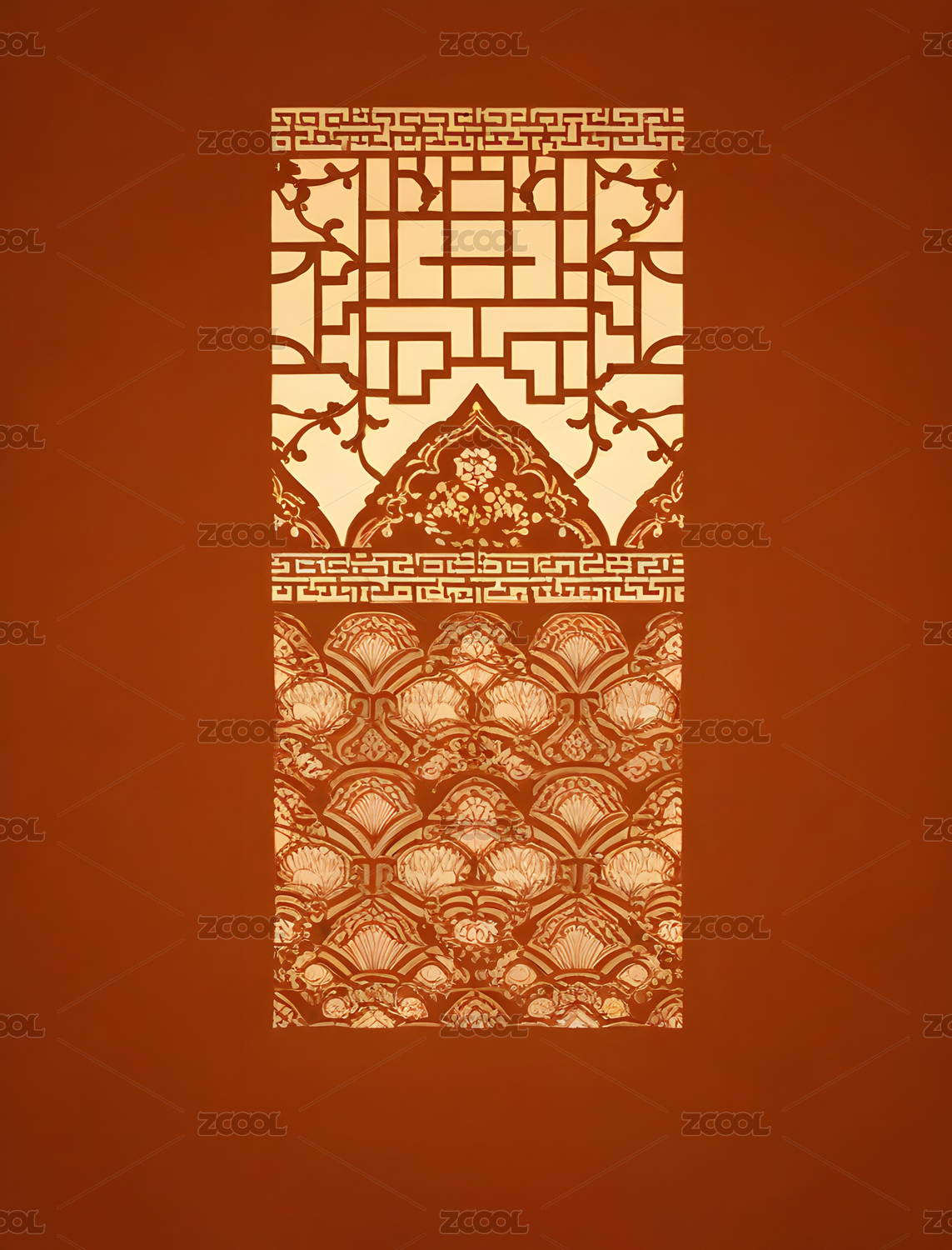 朱红色背景传统典雅印花图案
