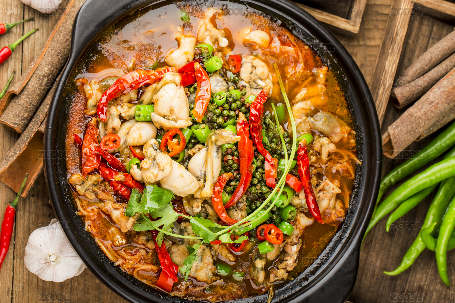砂锅里的川菜江湖菜水煮酸菜泡椒牛蛙青蛙