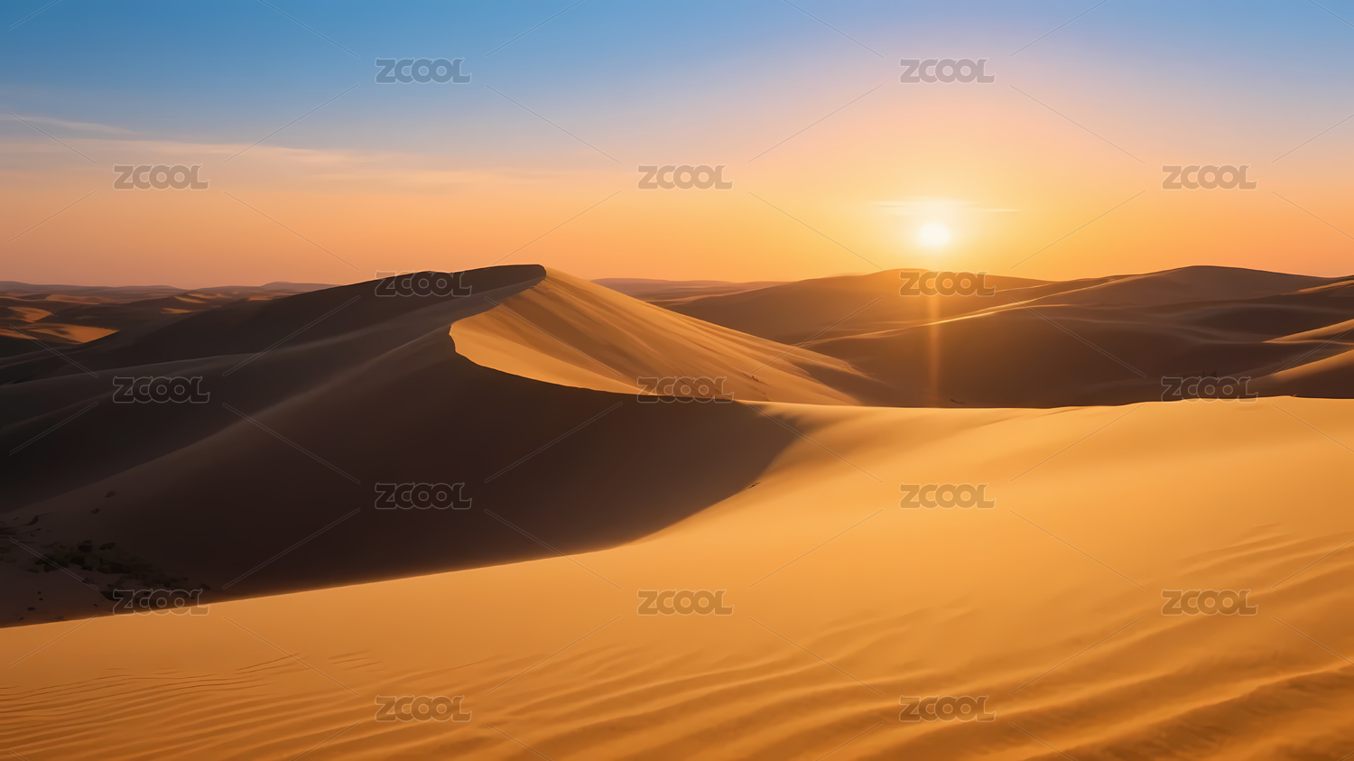 中国,新疆,塔克拉玛干沙漠,日落,黄昏,沙漠