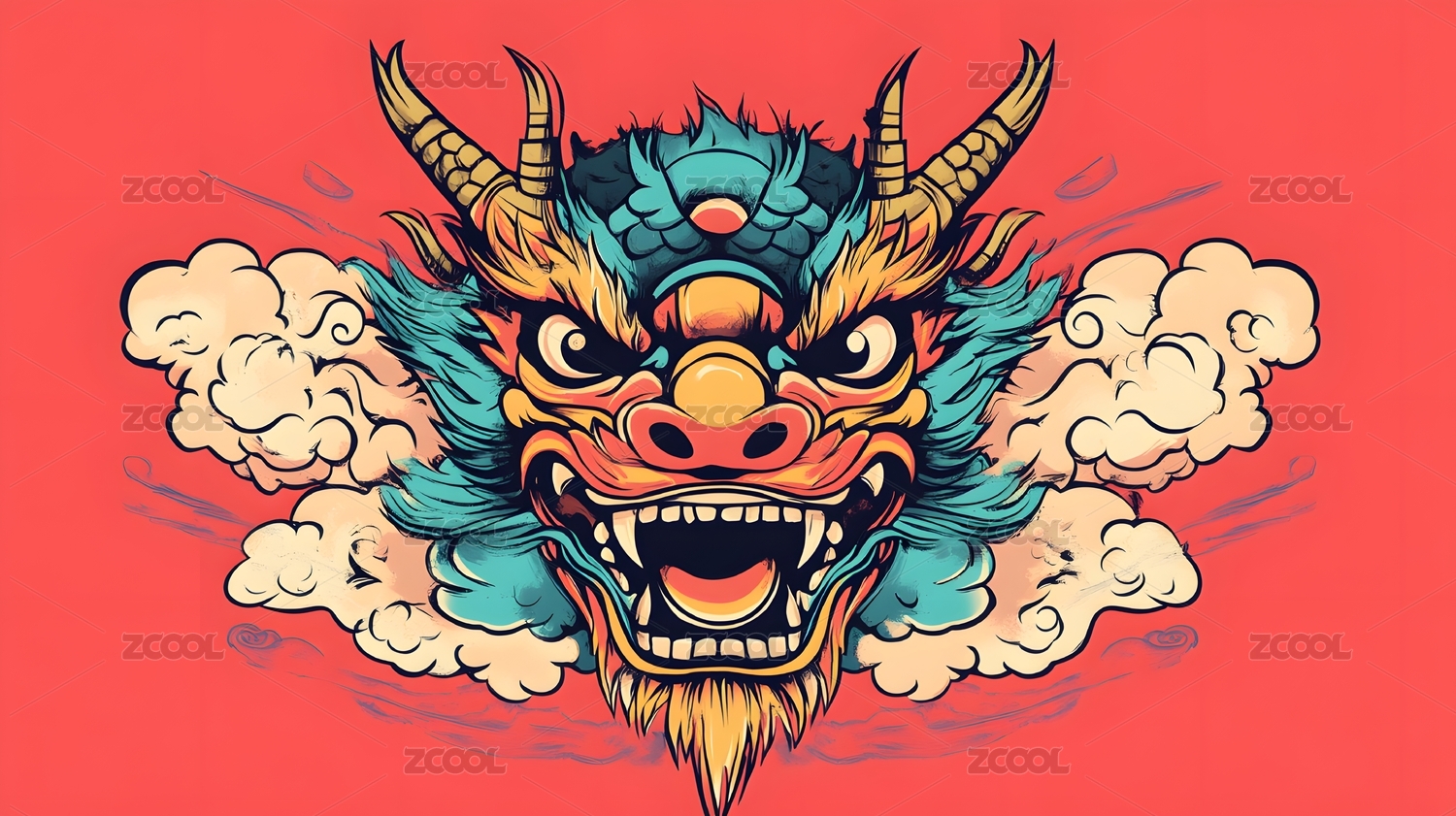 国潮风卡通插画龙头