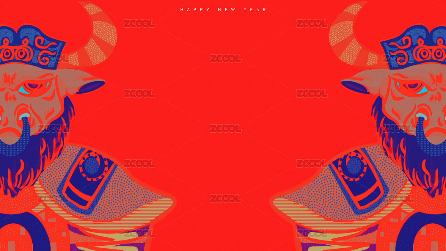 2021牛年春节牛魔王风格插画背景