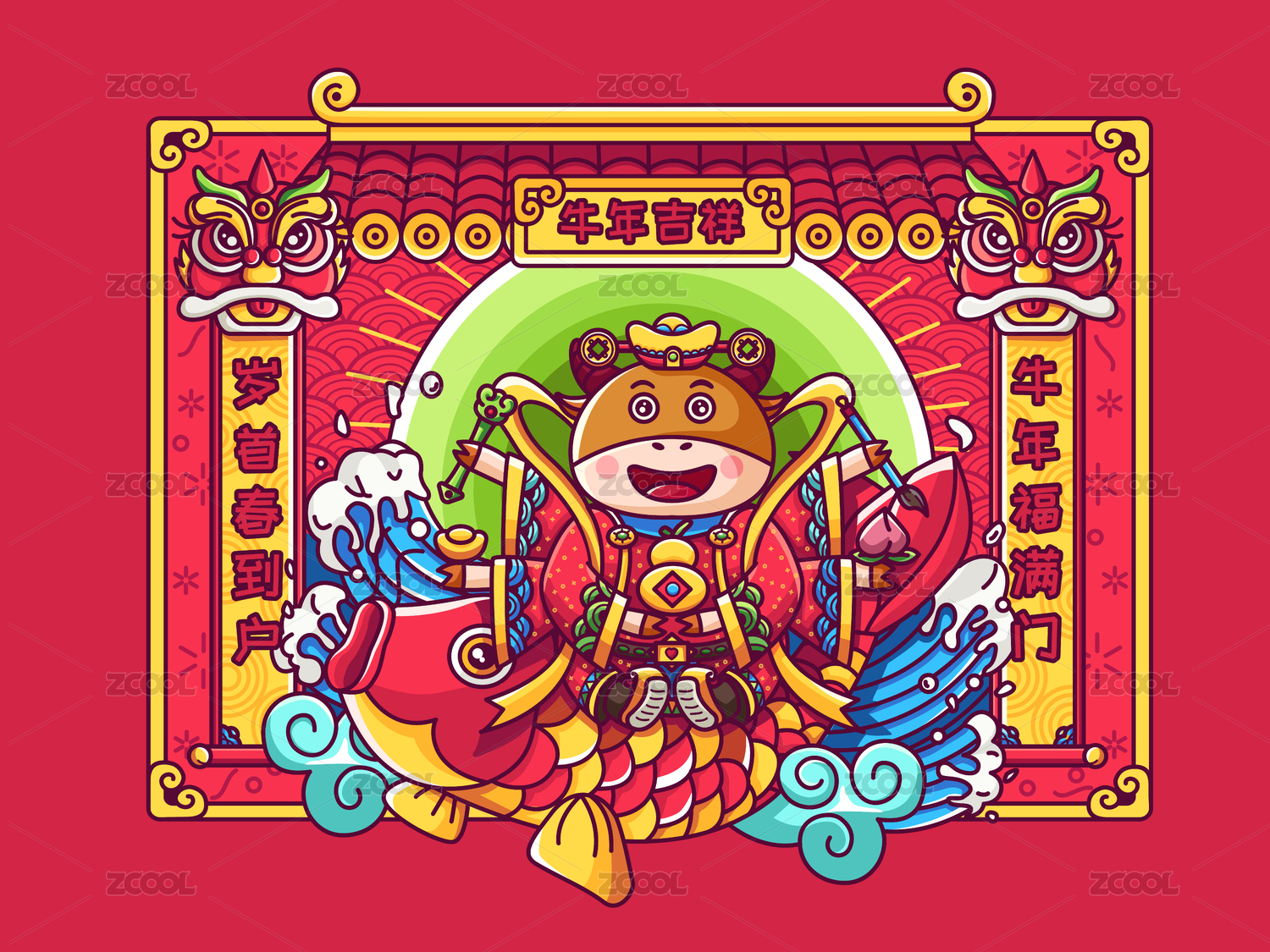 金牛送福国风插画