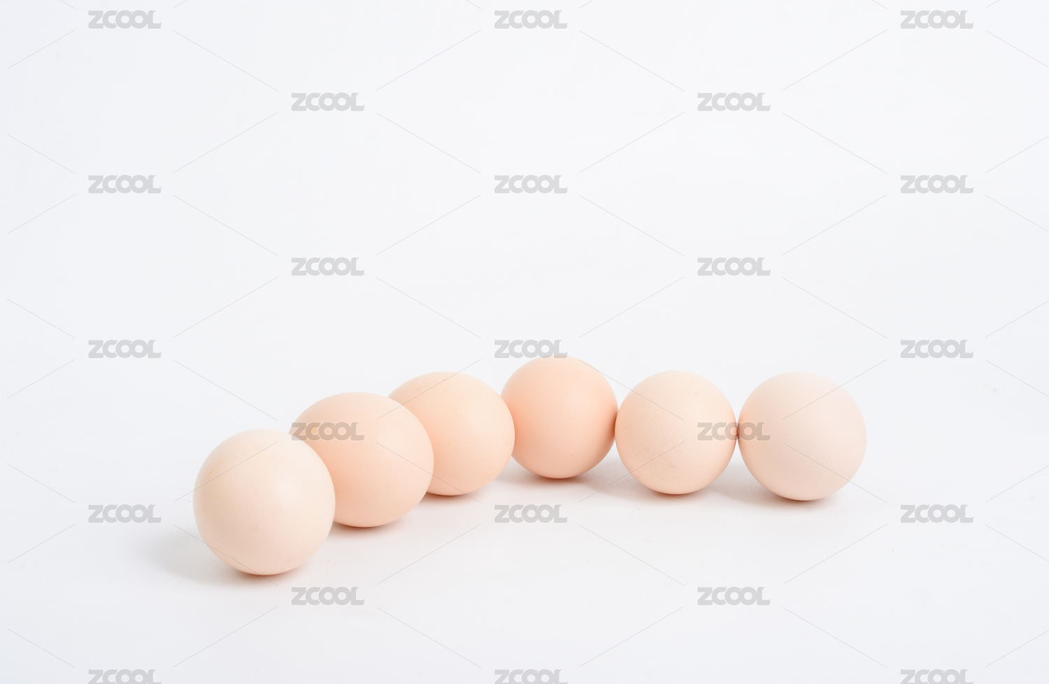 白色背景透明塑料盒中排列整齐的新鲜鸡蛋