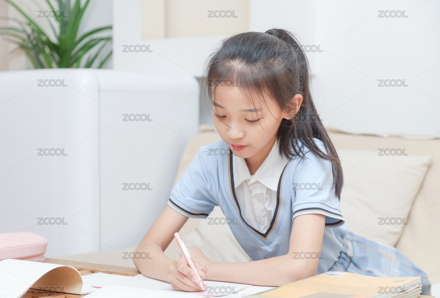 东方人,中国,黄种人,女孩,小学生,白色背景,沙发,茶巾,室内,家