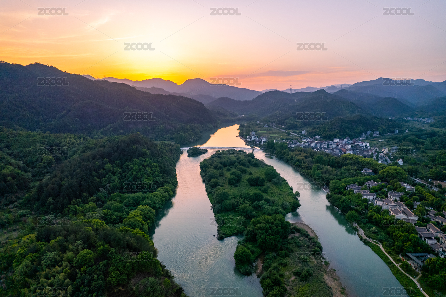 航拍中国浙江丽水傍晚时分的古堰画乡