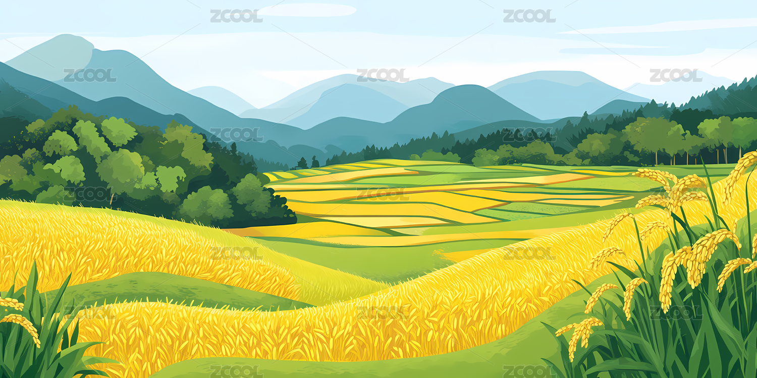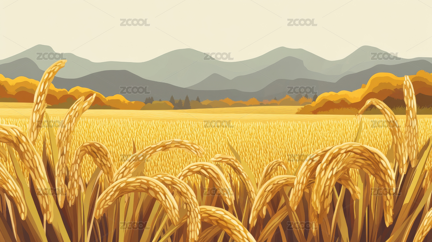 插画,卡通,食物,粮食,成熟,大米,稻穗,稻子,谷物,谷子