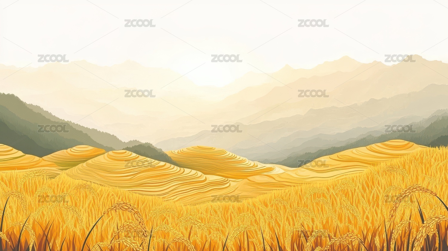 立秋节气秋天农业收获农田粮食成熟秋收插画