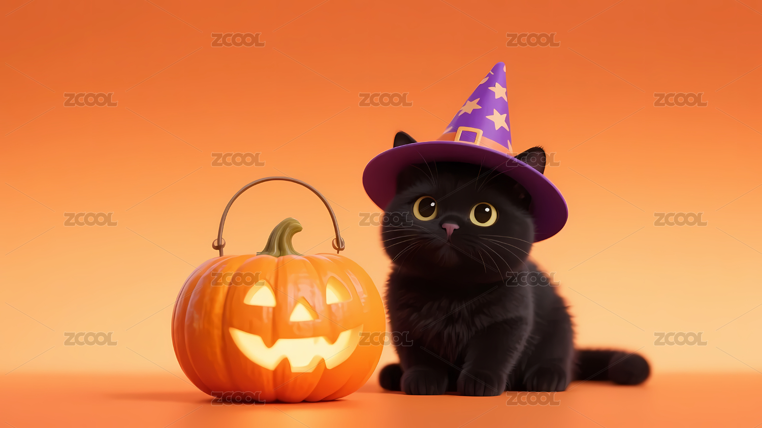 紫帽小猫南瓜灯背景