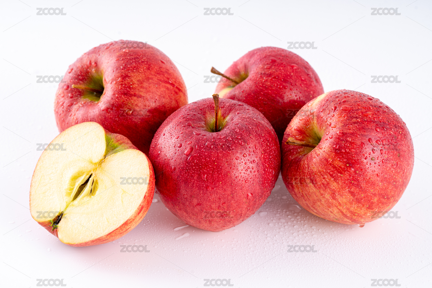 白底上放着切开的苹果