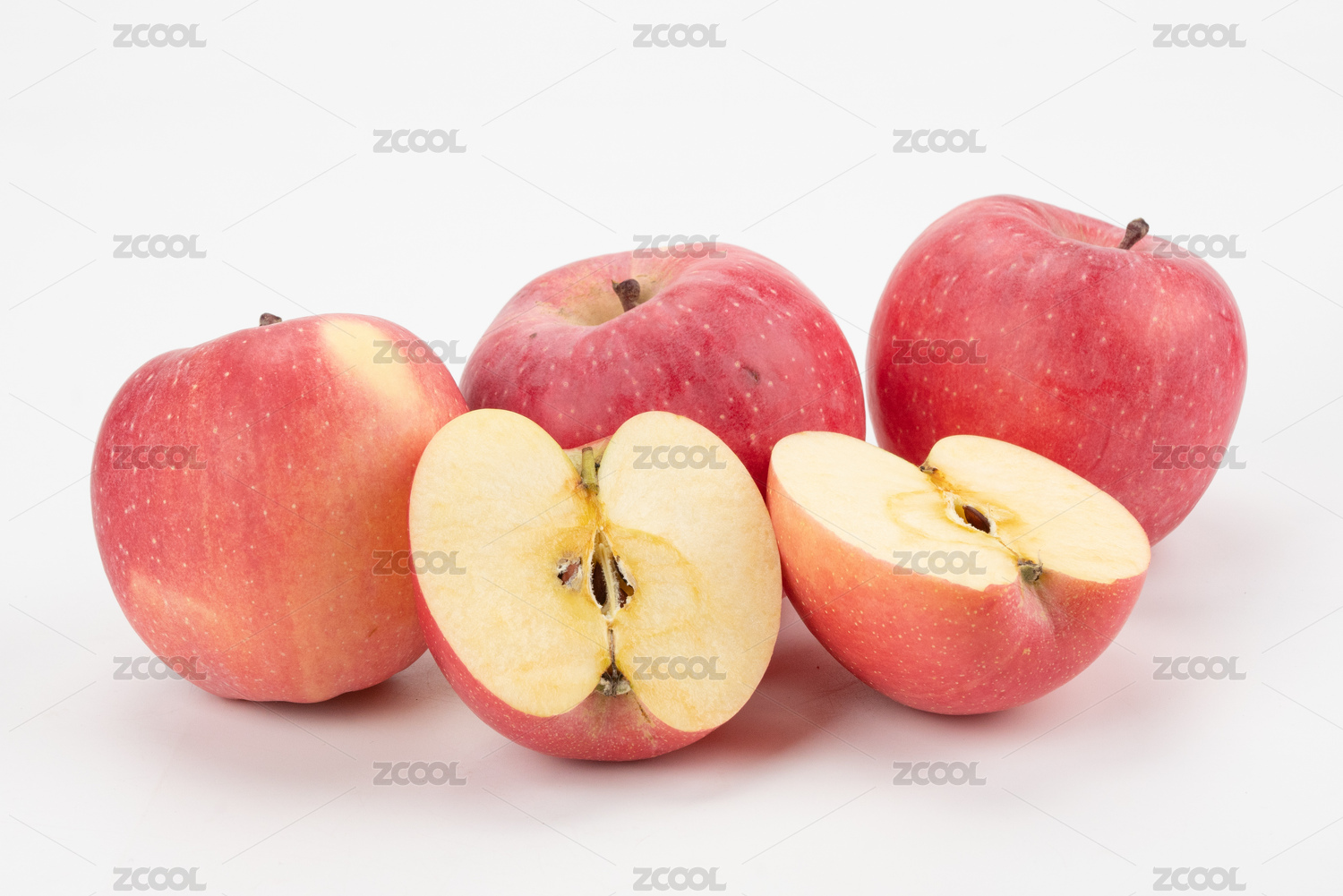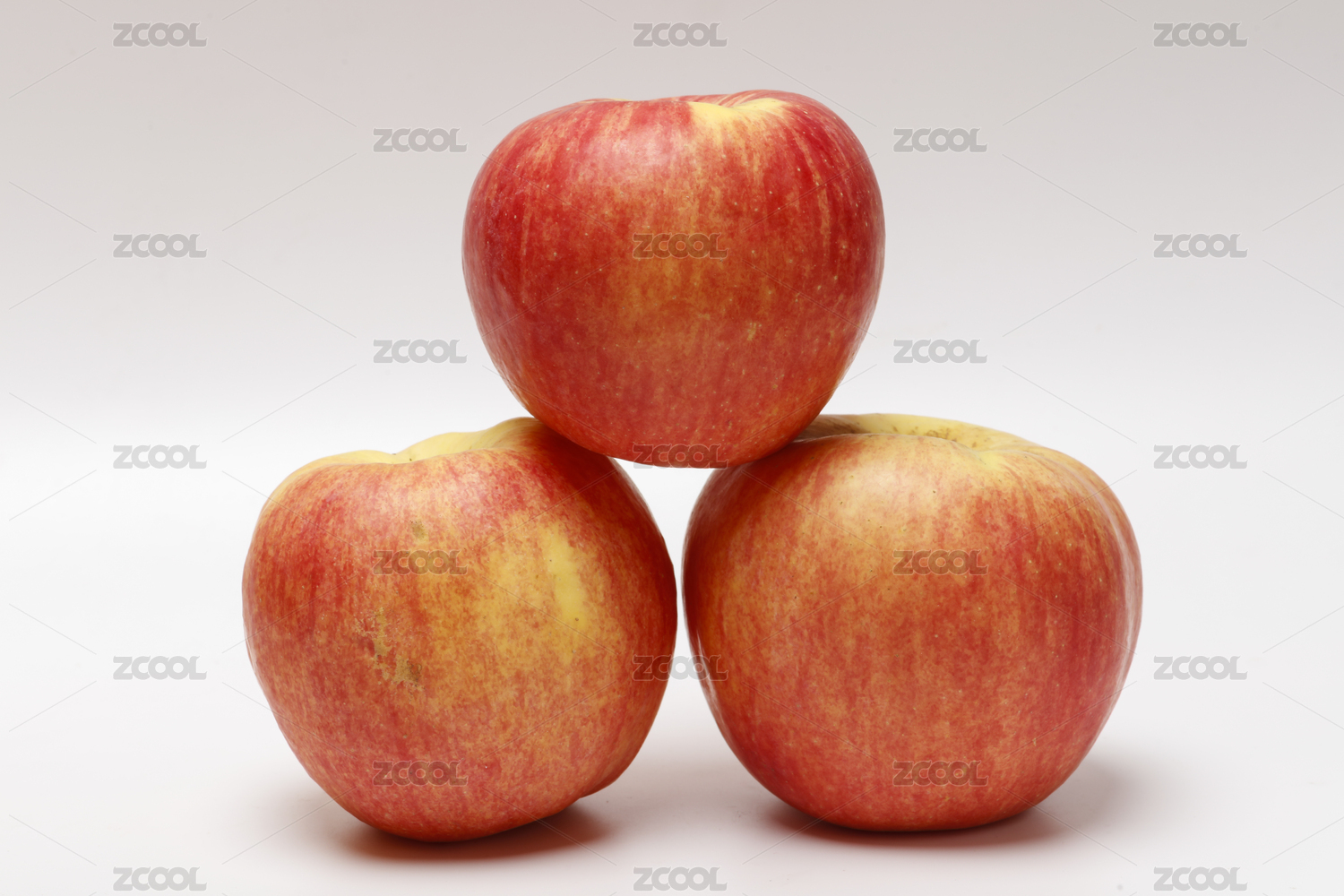 白色背景上摆放着的新鲜的红富士苹果