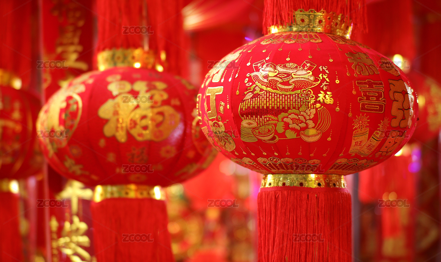 中国春节福字红灯笼装饰
